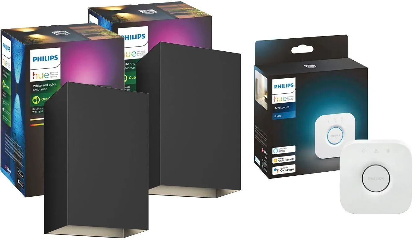 lieferbar-in 2-3 Werktagen bei dirPhilips Hue LED Außen-Wandleuchte Resonate, Dimmfunktion, LED fest integriert, RGB, White&Color Ambiance, Wandleuchte 2er Set + Hue Bridge schwarz
