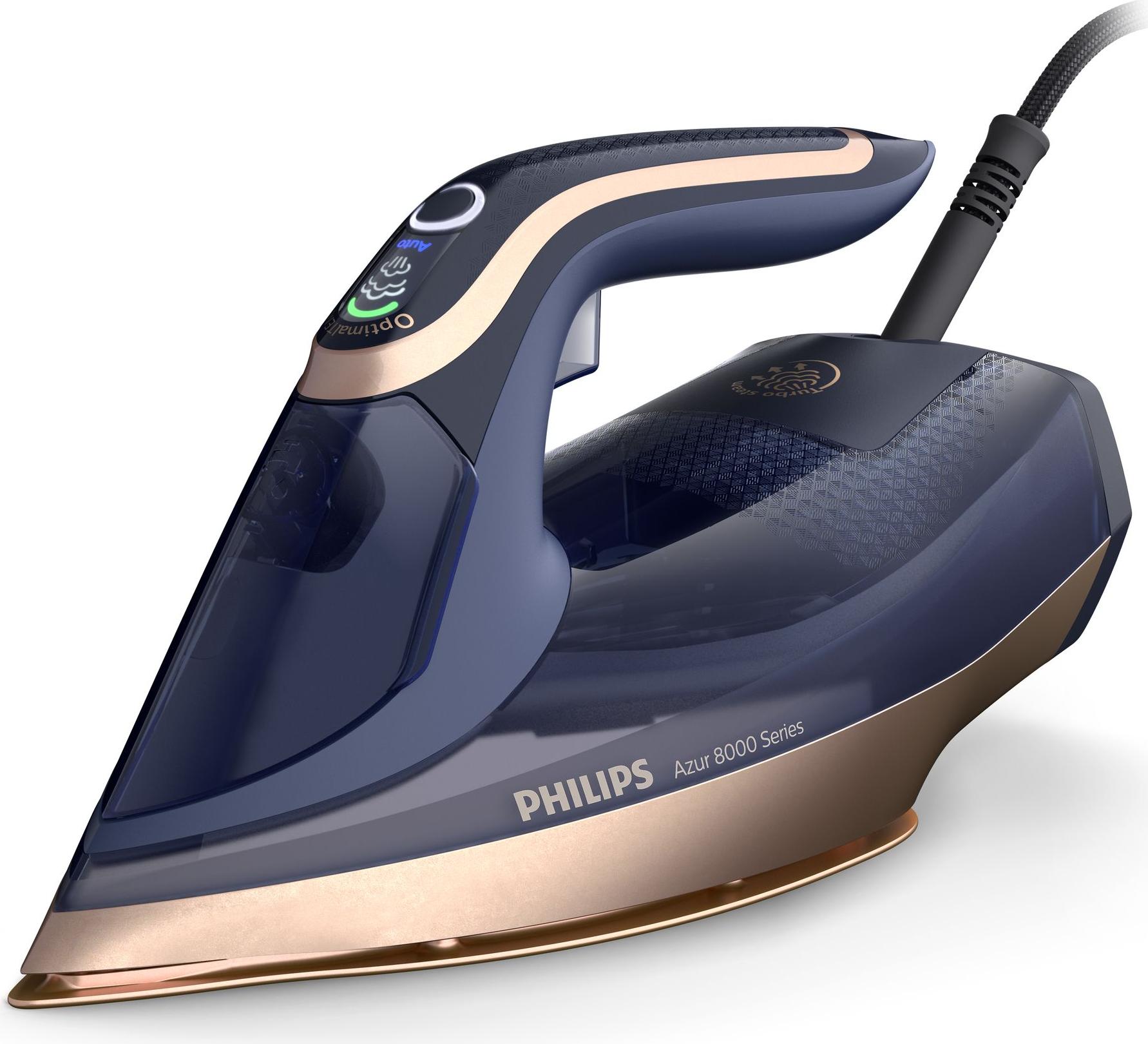 Auf Lager Versand durch AmazonPhilips Azur 8000 Serie Dampfbügeleisen - 85 g/min Dauerdampf, 260 g Turbo-Dampfstoß, 3000W, OptimalTEMP Technologie, SteamGlide Elite-Bügelsohle, Dunkelblau (DST8050/20)