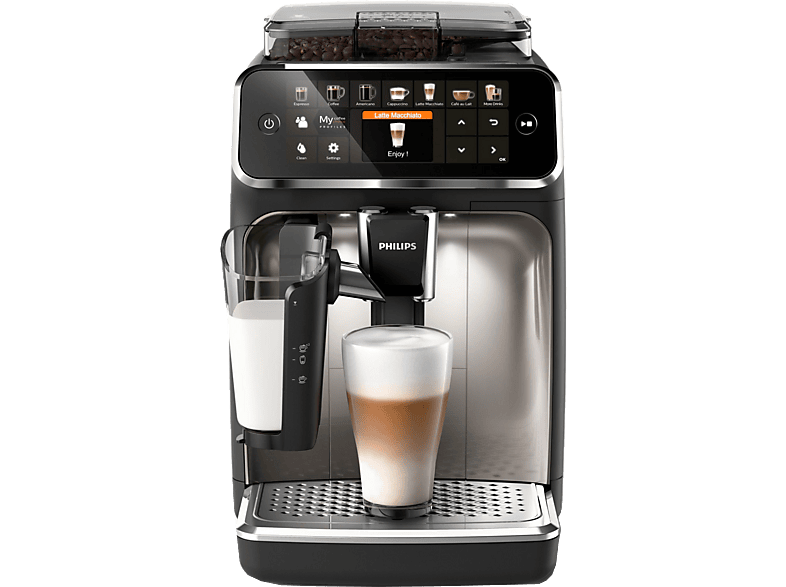 33 Händlerangebote bei billiger.de - Kategorie: Kaffeevollautomaten - Philips - Samtig-cremiger Schaum: Bereiten Sie mit dem LatteGo System samtig-cremigen Milchschaum zu es besteht aus nur zwei spülmaschinenfesten Teilen und ist daher leicht zu reinigen 12 Kaffeespezialitäten auf Fingertipp: Genießen Sie Ihren Lieblingskaffee, vom kräftigen Espresso bis zum milden Cappuccino Intuitives TFT-Display: Wählen Sie mit dem benutzerfreundlichen Touchscreen dieser Espressomaschine mühelos Ihr Getränk aus mit dem Coffee Customiser können Sie Aromastärke und Kaffeemenge anpassen Intensität Verstärken: Mit der ExtraShot Funktion erhalten Sie einen kräftigeren Geschmack ohne zusätzliche Bitterkeit Speicherfunktion: Bis zu 4 Personen können ihre ganz persönlichen Kaffeevorlieben speichern und mit der Coffee Customiser Funktion Intensität, Stärke und Milchmenge jedes Kaffees nach Wunsch anpassen - GTIN:8710103931324 Dieses Angebot von Saturn ist mit 479 Euro ein sehr guter Preis für Neuware. ![]() ![]() PHILIPS EP5447/90 Serie 5400 LatteGo 11 Kaffeespezialitäten Kaffeevollautomat Schwarz/Chrom