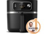 9 Händlerangebote bei billiger.de - Kategorie: Fritteusen - Philips - Der Philips Airfryer XXL HD9880/90 mit integriertem Thermometer ist in der Küche vielseitig einsetzbar und lässt Sie leckere und gesunde Gerichte einfach zubereiten. Neben der Nutri U App mit der Sie ihren Airfyrer verbinden können, helfen Ihnen auch die automatishcen Kochprogramme und geben Schritt-für-Schritt Anleitungen, um perfekte Ergebnisse zu erzielen. Die Rapid CombiAir Technologie lässt Sie zusätzlich den Luftstrom einstellen, sodass auch Sous-Vide Kochen kein Problem mehr ist. Zudem lassen sich die Gerichte ohne öl zubereiten, da der Airfryer mit heißer Luft arbeitet und diese so verwirbelt, dass die Lebensmittel von allen Seiten gleichmäßig umhüllt und gegart werden. Die XXL-Größe eignet sich für mehr als 7 Personen und hat dadruch ein Fassungsvermögen von 2 kg/8,3 l. Auch das Reinigen wird erleichert, da alle Teile spülmaschinenfest sind. - GTIN:8720389015373 ![]() ![]() Philips Airfryer XXL Connected HD9880/90 + Lebensmittelthermometer