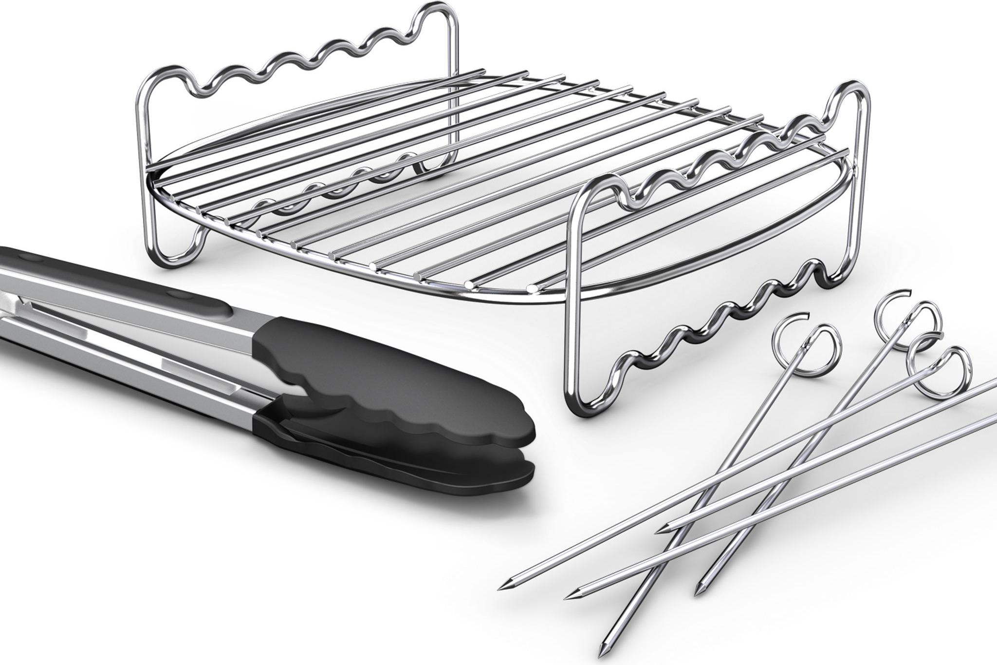 lieferbar-in 1-2 Werktagen bei dirPhilips Airfryer-Grillrost HD9920/00 für Airfryer 6,2L, 8,3L, 9L (7-St., Grillrost, 5 Spieße u.Zange im Lieferumfang), mit 2 Ebenen, HomeID App und spülmaschinenfesten Teilen schwarz|silberfarben
