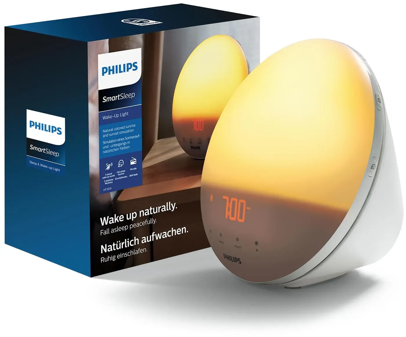 Zustand: Neu - Kategorien Küche, Haushalt & Wohnen - Philips Lighting - HF3532/01 - EAN: 8710103783732 - Personalisierte Aufwach- und Einschlaffunktion: Simulierter Sonnenauf- und -untergang, 20 Helligkeitseinstellungen, die individuell angepasst und auf bis zu 300 Lux eingestellt werden können, sowie eine Auswahl aus 7 natürlichen Wecktönen Farbige Sonnenaufgangssimulation: Der Lichtwecker ändert sein Licht innerhalb von 5 bis 60 Minuten (einstellbar) von Rot zu Gelb Mitternacht-Lichtfunktion und intelligente Funktionen: Das Tageslichtwecklicht nutzt ein gedämpftes, orangefarbenes Licht, das dir hilft, dich im Dunkeln zurechtzufinden; zu den smarten Funktionen gehören Schlummertaste durch Antippen, Nachttischlampe, USB-Ladefunktion und automatisch dimmbares Display Von Philips entwickelter Sonnenlichtwecker: Das Wake-up Light profitiert von über 10 n Know-how und Erfahrung des weltweit führenden Licht-Experten Im Lieferumfang enthalten: 1x Philips SmartSleep Wake-up Light mit einem 150 cm langen Kabel - bei Amazon.de ![]() ![]() Philips Wake-up Light HF3532/01