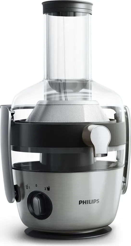Kategorie: Entsafter - Philips - GTIN:8710103777366 - Leichte Reinigung per HandDank des polierten Siebs lassen sich überreste ganz einfach mit einem Küchenschwamm entfernen. Leistungsstarker 1.100-W-MotorEntsaften Sie auch harte Obst- und Gemüsesorten mühelos mit dem starken 1.100-W-Motor. Obst kleinschneiden war gesternDank der 80 mm großen Einfüllöffnung müssen Obst und Gemüse kaum mehr kleingeschnitten werden. So sparst du Zeit und kannst täglich deinen frischgepressten Saft schneller genießen. Bis zu 50 % mehr BallaststoffeUnsere FiberBoost Technologie ermöglicht es dir, die Konsistenz deines Safts zu bestimmen. Von klaren Säften bis hin zu cremigen Smoothies du entscheidest, wieviele Ballaststoffe dein Saft enthalten soll. Geringerer GeräuschpegelDer neue Motor erzeugt weniger Geräusche und Vibrationen für einen leiseren Entsaftungsvorgang. Geben Sie Wasser für schnelles Vorreinigen hinzuDank der einzigartigen Vorreinigungsfunktion von Philips spülen Sie Ihren Entsafter nach dem Entsaften oder zwischen Entsaftervorgängen einfach schnell ab. Geben Sie Wasser in den Stopfer und schalten Sie den Entsafter ein, um ihn vorzuspülen. Fruchtfleisch fällt automatisch in einen BehälterDank der runden Form ohne Vertiefungen gelangen alle Reste in den Fruchtfleischbehälter. Tropfstopp für eine saubere KücheMit der integrierten Tropf-Stopp-Funktion halten Sie Ihre Arbeitsplatte zwischen Entsaftervorgängen makellos sauber. Aktivieren Sie die Tropf-Stopp-Funktion, indem Sie einfach ... ![]() ![]()