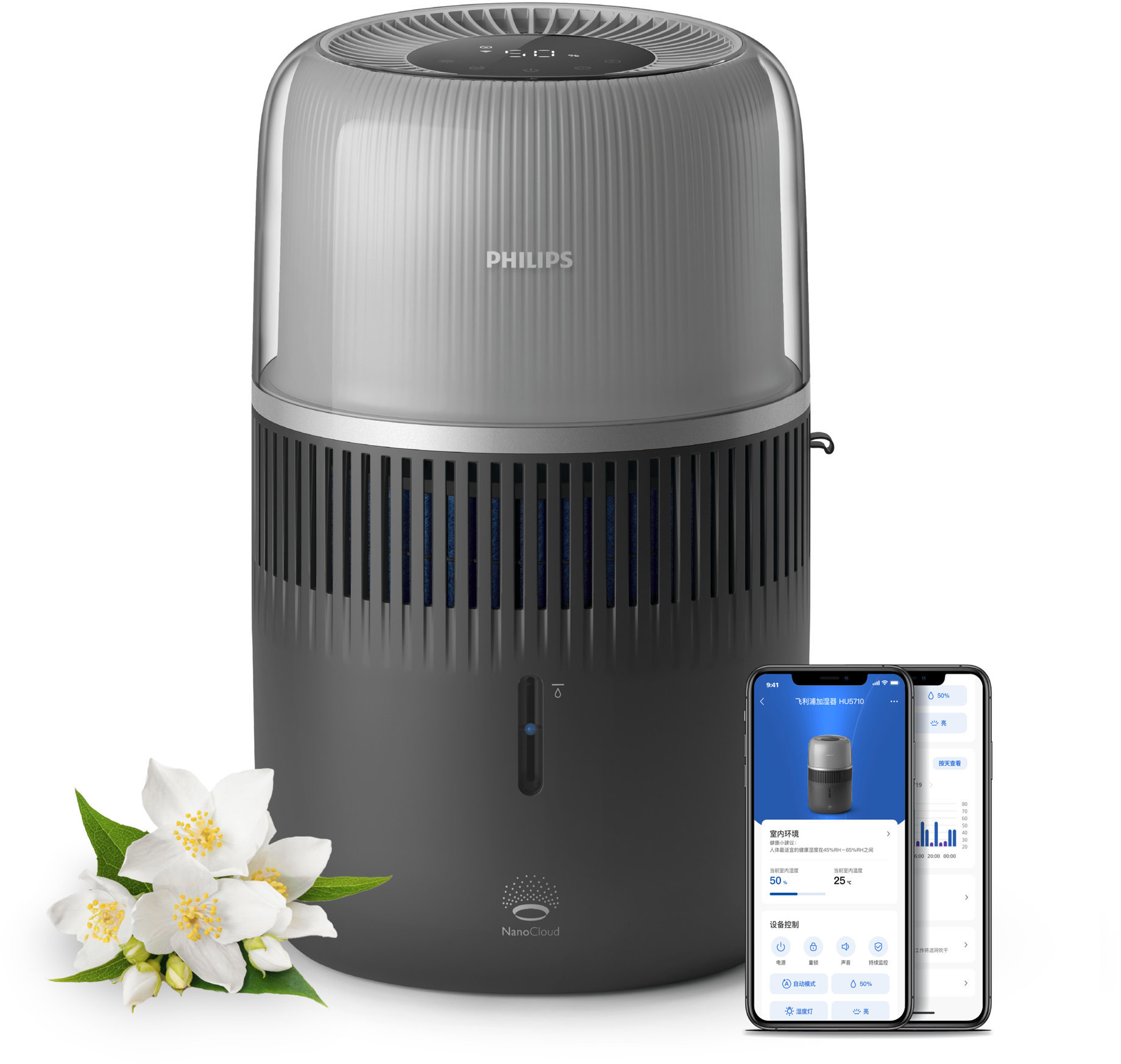 lieferbar-am nächsten Werktag bei dirPhilips Luftbefeuchter HU5710/03 5000 Series, 4,5 l Wassertank, für 56 m2 Räume, mit NanoCloud Technologie grau