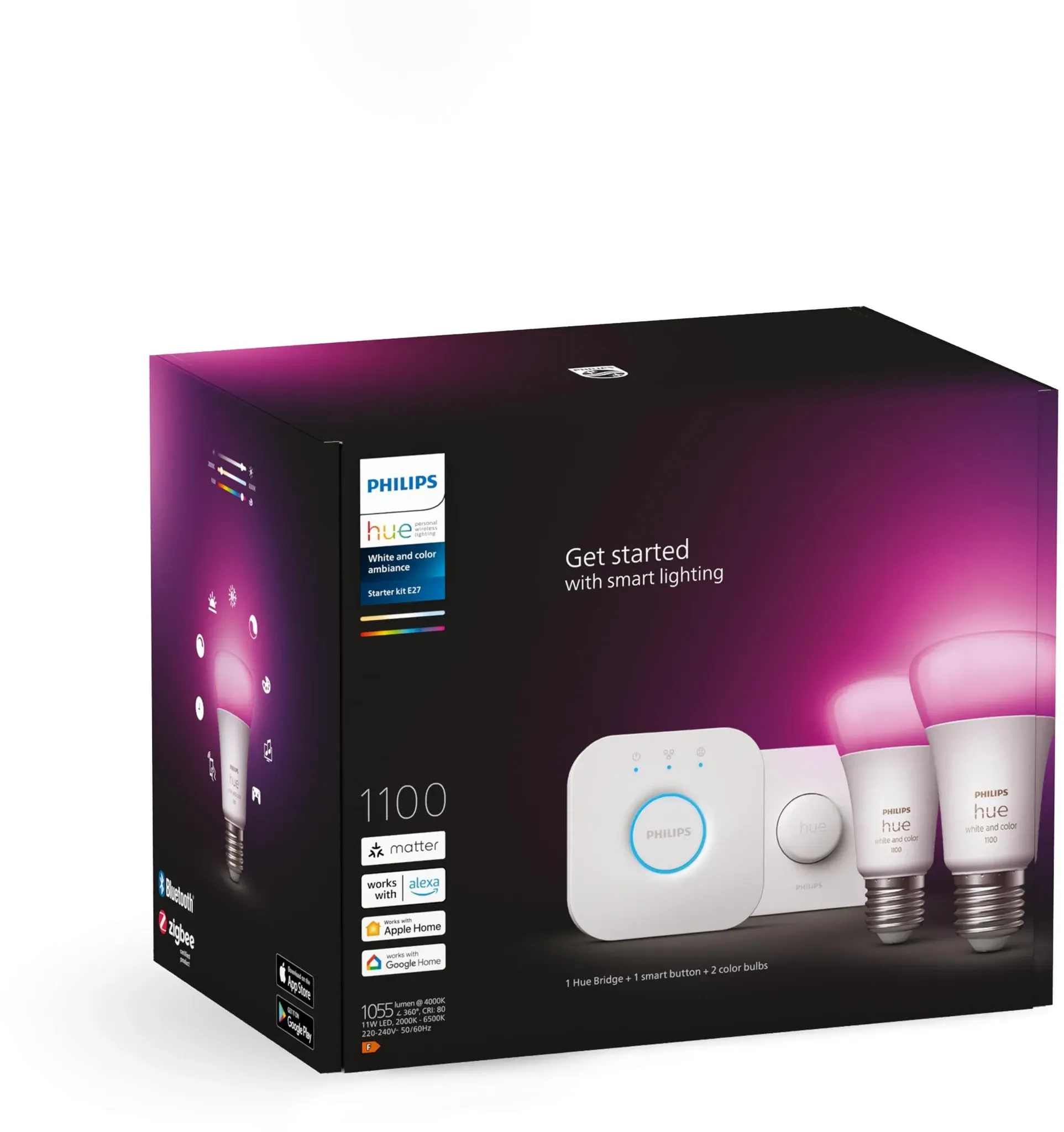 24 Händlerangebote bei billiger.de - Kategorie: Smart Home - Philips - Ihr Zuhause gestalten: Eingesetzt in jede E27 Fassung tauchen die 2 Erweiterungslampen von Hue jedes Zimmer Ihres Zuhauses in einladendes Licht und setzen tolle Akzente Einzigartige Atmosphäre: Dank 16 Mio. Farben und kühlen bis warmen Weißtönen schafft das individuell anpassbare, dimmbare LED Licht für jeden Anlass die passende Stimmung Bequeme Lichtsteuerung: Kompatibel mit dem Amazon Echo Dot (3.Generation), Echo Plus und Echo Show (2.Generation) lässt sich die Hue LED Beleuchtung mit Sprache oder einem Klick steuern Smarte Erweiterung: Die separat erhältliche Hue Bridge Steuerungszentrale kann die E27 Lampen zusammen mit anderen Lampen oder Zubehör steuern, automatisieren und von überall auf der Welt bedienen Einfache Installation: Die E27 LED Lampen sind leicht selbst zu installieren, funktionieren in jedem Zuhause und passen in alle Leuchten mit E27 Fassung - GTIN:8719514291317 Dieses Doppelpack für 89.99 Euro ist eine gute Option, um zwei Philips Hue White & Color Ambiance E27 1100lm Lampen zu erwerben. ![]() ![]() Philips Hue 2 x E27 LED-Leuchtmittel White & Color Ambiance 1100 lm