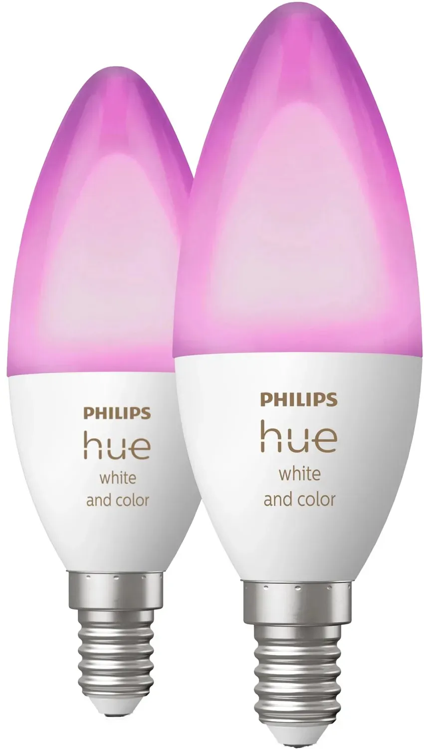 LED-Lampen Gesamtsortiment Wohnen Lampen + Leuchten Leuchtmittel Glühbirnen - EAN:8719514356610 - Per Bluetooth steuerbares Hue E14-Leuchtmittel - Intelligente Beleuchtung: Philips Hue ist kompatibel mit Siri, Alexa und dem Apple Homekit. - E14 LED Lampe in die Fassung drehen, App downloaden und schon können Sie Ihr Licht in einem Raum dimmen oder Lichtszenen einstellen. - Für die Bedienung im gesamten Zuhause: Erweitern Sie Ihr System mit der Hue Bridge für das volle Smart-Home-Erlebnis. - Personalisierte Beleuchtung: Wählen Sie in der Hue App aus 16 Millionen Farben und 50.000 Weisstönen, um so einem Raum das gewünschte Ambiente zu verleihen. - Individuelles Licht für jeden Anlass: Ob für eine Dinnerparty, Ihre täglichen Routinen oder einem entspannten Tagesausklang. - 5,3 Watt, 320 Lumen bei 2700 Kelvin. - gefunden von Kelkoo Diese einzelne Philips Hue White & Color Ambiance Lampe bietet volle Farbvielfalt zu einem moderaten Preis. ![]() ![]() Philips Hue Smart-LED-Lampe White & Color Ambiance (E14, Dimmbar, RGBW, 470 lm, 5,3 W)