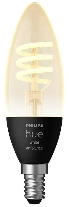 Verfügbarkeit: 1-4 Werktage - 37,95 €/Stück - EEK: G - Kategorie: LED-Lampen - Philips - GTIN:8719514411807 - Die Philips Hue LED-Lampe White Ambiance Filament erzeugt den klassischen Look einer Vintage-Lampe in einer kleineren Größe. Die Filament-Kerzenlampe verfügt über einen spiralförmigen Glühdraht und einen E14-Sockel . Sie eignet sich hervorragend für ein warmes bis kaltweißes Licht in kleinen Leuchten, wenn Du einen Vintage-Stil mit modernem Touch liebst. Beginnen Sie mit Bluetooth , der einfache Einstieg in smartes Licht. Lampe in die Fassung schrauben, Leuchte einschalten, App öffnen und verbinden: Wenn Sie Philips Hue mit Bluetooth verwenden, erhalten Sie die sofortige Kontrolle über bis zu 10 Lampen in einem Zimmer. Nutzen Sie das ganze Potential von smartem Licht durch den Einstieg und die Erweiterung mit der Philips Hue Bridge . Beginnen Sie gleich mit einer Hue Bridge oder füge Sie die Hue Bridge zu Ihrem vorhandenen Bluetooth-System hinzu, um sämtliche Funktionen zu nutzen. Sie können bis zu 50 Lampen oder Leuchten verwenden, Ihr System auf mehrere Zimmer (und auch den Außenbereich) ausdehnen, Routinen einrichten und Ihr Licht von jedem Ort der Welt aus steuern. Steuern Sie Ihr Licht mit dem passenden Zubehör: Der Philips Hue App , per Sprachbefehl oder über smartes Zubehör. * Mit der Philips Hue App können Sie Ihre Lampen ein- und ausschalten , das Licht im Raum dimmen , Szenen einstellen und mehr. * Philips Hue Lampen funktionieren ... Für 44 Euro erhalten Sie eine Philips Hue White & Color Ambiance E14 LED Leuchte, die mit 16 Millionen Farben maximale Flexibilität bietet. ![]() ![]() Philips Hue White & Color Ambiance E14 LED Leuchte (470 lm), dimmbare LED Lampe für das Hue Lichtsystem mit 16 Mio. Farben, smarte Lichtsteuerung über Sprache und App