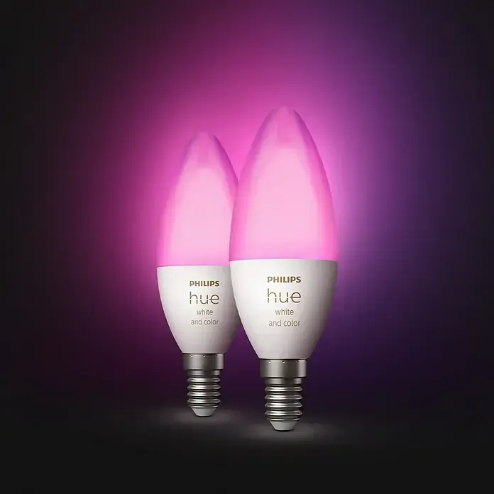 EEK: G - Kategorie: LED-Lampen - Philips - GTIN:8719514356719 - Bringe mit der Philips Hue White & Color Ambiance E14 LED Lampe smartes Licht in Dein Zuhause und schaffe eine magische Atmosphäre. Einfach die Lampe in die Fassung drehen und schon kannst Du das Licht per App, Sprache oder Schalter steuern. Wähle in der Philips Hue App aus mehr als 16 Millionen Farben und verschiedenen kühlen bis warmweißen Tönen, um für jeden Moment die passende Stimmung zu erzeugen. Nutze dabei Bluetooth zur sofortigen Lichtsteuerung in einem Raum oder verbinde die Hue Bridge Steuerzentrale, um den vollständigen Funktionsumfang Deines Philips Hue Lichtsystems im gesamten Haus zu genießen. So holst Du noch mehr aus Deinen smarten Philips Hue Lampen heraus: Mit der separat erhältlichen Hue Bridge kannst Du bis zu 50 Hue Lampen und Leuchten im In- und Outdoorbereich gleichzeitig steuern und viele weitere Funktionen nutzen: -Simuliere Anwesenheit: Lichtsteuerung von unterwegs, egal wo du dich gerade befindest -Passe Dein Licht Deinem Alltag an: Stelle automatisierte Routinen ein und kreiere Deine eigenen Lichtszenen -Erlebe maximales Entertainment: Synchronisiere Dein Licht mit Filmen, Games und Musik - 84,99 Euro bei OBI - gefunden von billiger.de Eine einzelne Philips Hue White & Color Ambiance E14 Lampe mit 16 Millionen Farben für vielseitige Lichtgestaltung. ![]() ![]()