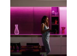 Lampen Leuchten Wohnen - - Philips Hue - 1m Erweiterung für LightStrip Plus - White and Color Ambiance Ob nun ein stimmungsvoller RGB-Farbwechsel oder aber ein weißes Licht zum Arbeiten, Lesen oder Lernen gewünscht ist - der Philips Hue LightStrip Plus ermöglicht ganz individuelle Lichtsituationen aus 16 Millionen zur Verfügung stehenden Farben. Die ein Meter lange Erweiterung kann ganz einfach an den LightStrip Plus 2 m Basis (siehe Zubehör) angehängt werden, indem die Enden zusammengesteckt werden. Auf bis zu 10 Meter kann das Stripsystem erweitert werden, wodurch auch längere Bereiche im Wohnraum nahtlos beleuchtet werden können. Mit 950 Lumen sorgt der Strip für enorme Helligkeit - vor allem in Kombination mit weiteren Elementen dieses Systems. Die zahlreichen Möglichkeiten der individuellen Lichsteuerung lassen ein nie dagewesenes Lichterlebnis in den eigenen vier Wänden Wirklichkeit werden. Die heimische Beleuchtung kann ganz nach den persönlichen Vorlieben gestaltet, verändert und erweitert werden. Passend zur Stimmung kann die Lichtfarbe jederzeit mithilfe der Hue App ausgewählt werden. Auch eine Steuerung ohne weiteres Zubehör über die Bluetooth-App ist möglich. Die LightStrip Plus Erweiterung ist nicht kompatibel mit den Vorgänger LightStrips ohne Bluetooth-Technologie, da neue Steckverbindungen zum Einsatz kommen. Besonderheiten / Kompatibilität: - für den Betrieb ist die LightStrip Plus 2 m Basis notwendig (siehe Zubehör). - alle 33 cm kürzbar - dimmbar - ... ![]() ![]() Philips hue - white and eBay color ambience Lightstrip Plus extension 1m / 1 Meter Erw.