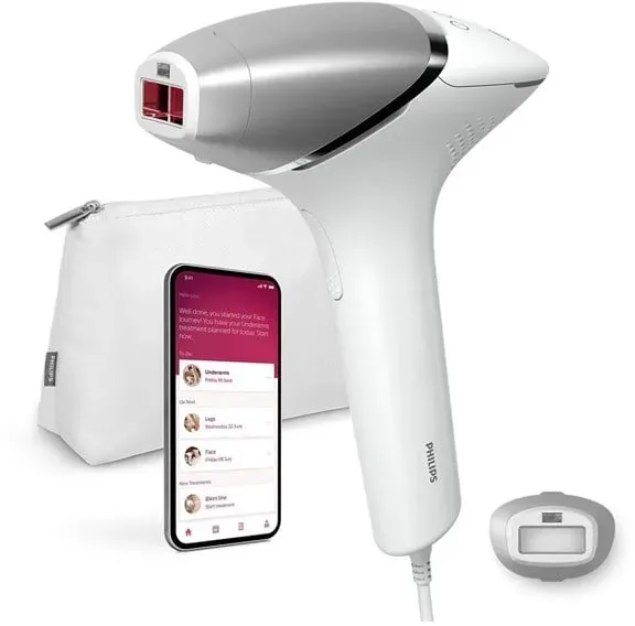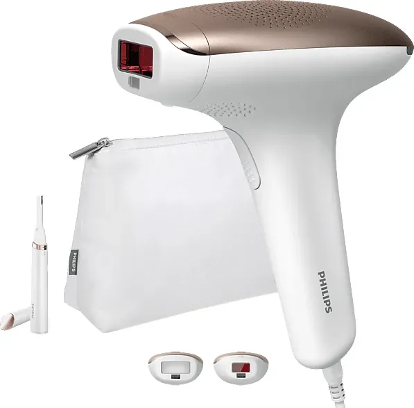 Philips - EAN: 8710103880806 - Mit dem Philips Lumea IPL 8000 Series BRI947/00 kannst du deinen gesamten Körper sicher und bequem enthaaren. Die zugehörige Lumea-App gibt dir Tipps und Empfehlungen und erstellt einen persönlichen Behandlungsplan für dich, damit du 18 Monate ein glattes Ergebnis erzielst. Der integrierte Hautsensor sorgt währenddessen dafür, dass du die richtige Lichtintensität für deine Hautfarbe verwendest. So verhinderst du, dass deine Haut beschädigt wird. Zum Enthaaren deines Körpers gibt es vier verschiedene smarte Aufsätze, die jeweils eine eigene Form haben. Diese Form ist genau auf einen bestimmten Körperbereich abgestimmt, damit du den Konturen deines Körpers einfach folgen kannst und der Hautkontakt nicht unterbrochen wird. Nach Gebrauch verstaust du den IPL-Haarentferner und die Aufsätze bequem im luxuriösen Aufbewahrungsetui. Hinweis: IPL-Enthaarung basiert technisch auf dem Kontrast zwischen deiner Haar- und Hautfarbe. Deshalb funktionieren die meisten IPL-Geräte nicht auf dunkler Haut und sind nicht zur Entfernung grauer, weißer oder roter Haare geeignet. Hinweis: Ein IPL-Gerät ist nicht für dich geeignet, wenn du schwanger bist, bestimmte Medikamente einnimmst oder Sommersprossen hast. Vor Gebrauch solltest du die Gebrauchsanleitung durchlesen, um zu prüfen, ob dieses Produkt für dich geeignet ist. - bei coolblue.de - aus Yadore Produktdaten Dieses Modell der 9000er Serie bietet viele Lichtimpulse und Aufsätze für eine umfassende Behandlung. ![]() ![]() Philips IPL-Haarentferner »Lumea S9000 BRI958/00« 450.000 Lichtimpulse 4 Aufsätze (Achseln, Bikinizone, Körper und Gesicht), kabellos, 47497246-0 zartrosa