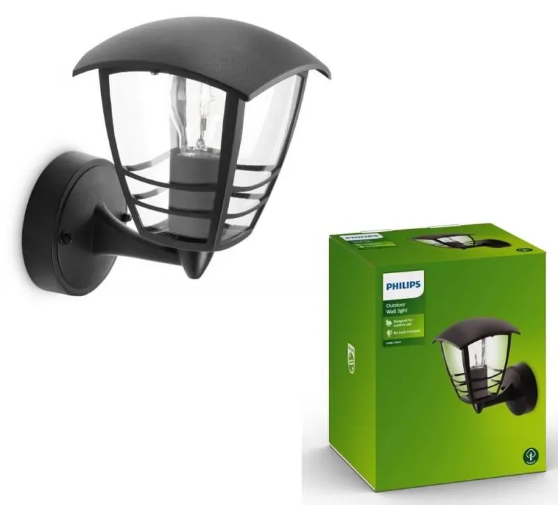 Sofort lieferbar | in 1-3 WerktagenPhilips myGarden Außen Wandleuchte Creek Schwarz in nostalgischer Laternenform
