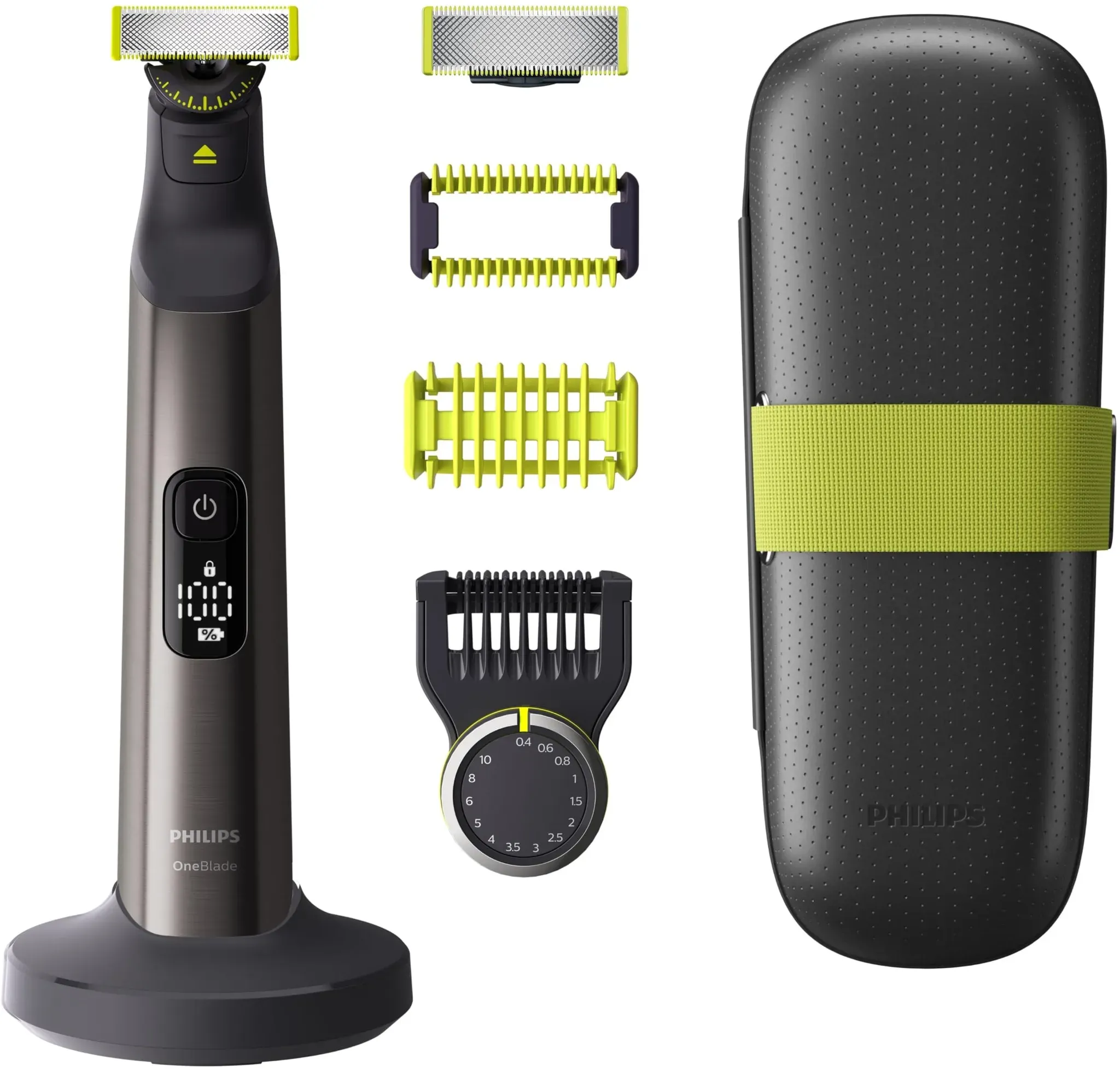 Haarschneider Gesamtsortiment Beauty + Gesundheit Haushalt Beauty + Gesundheit Rasur + Haarentfernung Trimmer + Haarschneider Elektrische Rasierer, Trimmer & Epilatoren - EAN:8720689027199 - Müheloses Trimmen, Stylen und Rasieren jeder Haarlänge Schneidet Haare, nicht die Haut Der Philips OneBlade Pro Face + Body trimmt, rasiert und stylt jede Haarlänge. Sie erhalten eine Klinge für das Gesicht und eine Klinge für den Körper inkl. Hautschutzaufsatz. Mit Philips OneBlade benötigen Sie nur ein Tool für Ihren Style. - gefunden von Kelkoo Ein leistungsstarkes Pro-Modell mit Chromdesign für eine stilvolle und effektive Rasur. Mediamarkt .de Philips QP6552/15 OneBlade Pro 360 Face&Body, Barttrimmer, Chromdesign