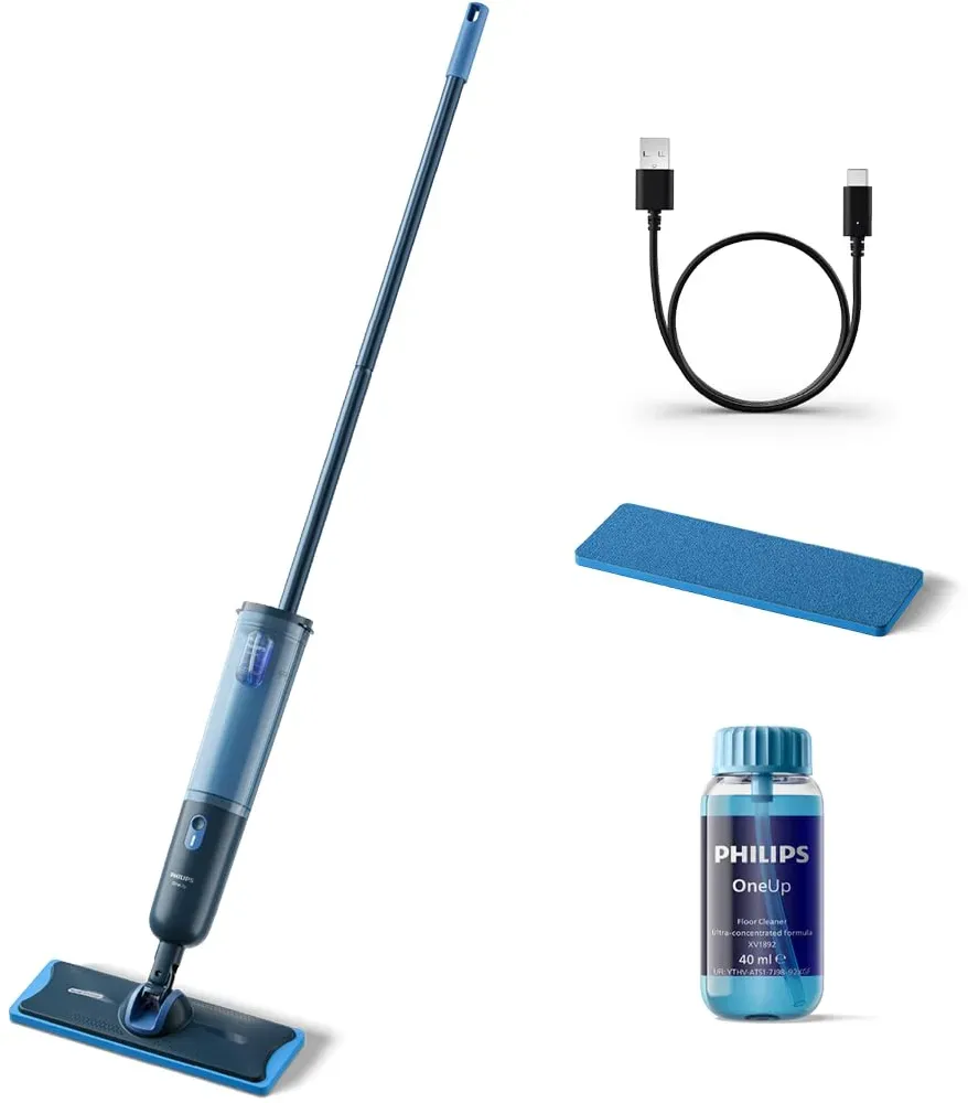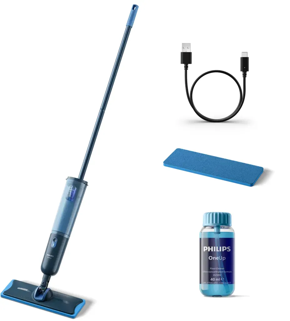 vorrätig-in ein bis drei Werktagen bei dirPhilips Akku-Wischmopp OneUp elektrischer Wischer 5000 Series XV5113/01 70 min Akku-Laufzeit, inkl. 1 Pad und 40 ml Reiniger, 59782963-0 Blau