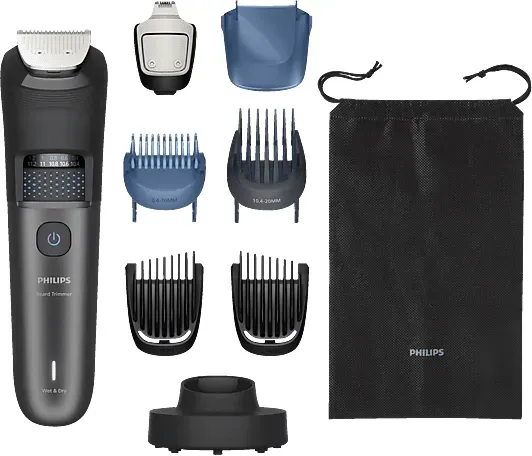 Kategorie: Elektrische Rasierer - Philips - GTIN:8720689042802 - Der Philips Bartschneider Serie 7000 BT7660/15 bietet maximale Präzision und Komfort für die tägliche Bartpflege. Mit 40 Längeneinstellungen in feinen 0,2-mm-Schritten lässt sich jeder Look ganz individuell stylen vom kurzen Stoppelbart bis zum gepflegten Vollbart. Die selbstschärfenden Metallklingen sind scharf und benötigen kein öl. Dank BeardSense-Technologie erkennt der Barttrimmer für Herren die Haardichte 125x pro Sekunde und passt die Leistung automatisch an für gleichmäßige Ergebnisse auch bei dichten Bärten. Die innovative Haarauffangschale fängt geschnittene Haare auf und sorgt so für wenig Reinigungsaufwand. Der Präzisionstrimmer ermöglicht saubere Konturen an Kinn, Hals und Wangen, während spezielle Kammaufsätze für sanfte übergänge beim Ausdünnen sorgen. Der Trimmer ist abwaschbar und kann bequem unter fließendem Wasser gereinigt werden ideal für Nass- und Trockenanwendungen. Bis zu 120 Minuten Akkulaufzeit sowie eine Schnellladung in nur 5 Minuten bieten volle Flexibilität. Die Ladestation sorgt für komfortables Aufladen und eine ordentliche Aufbewahrung. Der ergonomische Griff liegt gut in der Hand und bietet volle Kontrolle beim Stylen für perfekte Ergebnisse bei jeder Bartpflege. - 69,99 Euro bei Media Markt Online Shop - gefunden von billiger.de Ein kompakter Multifunktionstrimmer mit 13-in-1-Funktionen, ideal für Reisen und den täglichen Gebrauch. Mediamarkt .de Philips MG7920/15 All-in-One Series 7000 Multifunktionstrimmer 13-in-1 7000, Multigroomer, Schwarz