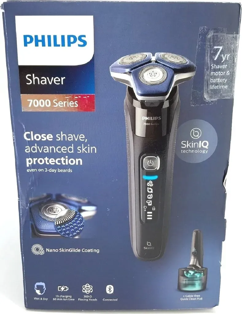 3 Werktagen in_stock - Barttrimmer Gesichtsrasierer Elektrische Rasierer, Trimmer & Epilatoren - EAN:8720689010931 - Die Philips Series 7000 gleitet sanft über Ihre Haut und schneidet gründlich jedes Haar, sogar bei einem Drei-Tage-Bart. Der Rasierer mit fortschrittlicher SkinIQ Technologie passt sich automatisch an und unterstützt die richtige Bewegung für einen besseren Hautschutz. - gefunden von Kelkoo Ein hochpreisiges Modell, das fortschrittliche Funktionen für eine optimale Rasur bietet. ![]() ![]() Philips, Rasierapparat, Shaver series 7000 S7882/54 Elektrischer Nass- und Trockenrasierer