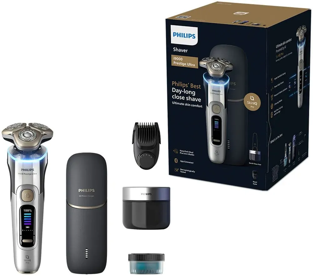 Barttrimmer Gesamtsortiment Beauty + Gesundheit Haushalt Beauty + Gesundheit Rasur + Haarentfernung Rasierapparat Elektrische Rasierer, Trimmer & Epilatoren - EAN:8720689004206 - Spürbar glatt, spürbar angenehm mit SkinIQ Technologie. Erleben Sie mit dem Philips S9000 Prestige eine glatte und gründliche Rasur - selbst bei einem Sieben-Tage-Bart. Der Rasierer ist mit der SkinIQ Technologie ausgestattet und passt sich an Sie an, um eine Rasiererfahrung zu ermöglichen, die Sie sich schon immer gewünscht haben. - gefunden von Kelkoo Dieses High-End-Modell der Series i9000 Prestige Ultra bietet modernste Technologie und ein UV-Ladecase für ultimative Pflege. ![]() ![]()