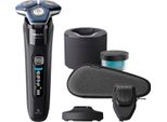Philips - EAN: 8720689010931 - Klare Rasur, fortschrittlicher Hautschutz mit SkinIQ-Technologie Der Philips Series 7000 gleitet sanft über Ihre Haut und schneidet dabei jedes Haar gründlich ab - selbst bei 3-Tage-Bärten. Ausgestattet mit der fortschrittlichen SkinIQ-Technologie erkennt der Rasierer die richtige Bewegung, passt sich an und führt sie aus, um die Haut besser zu schützen.Philips SHAVER Series 7000 S7886/58 Wet and Dry Elektrorasierer. Rasiersystem: Rotationsrasierer, Produktfarbe: Schwarz, Rasiersystemtechnologien: StahlPräzisionsklingen. Stromquelle: Akku, Akku-Technologie: Lithium-Ion (Li-Ion), Akkutyp: Eingebauter Akku. Funktionen der Rasiererbasisstation: Aufladen, Reinigung, Aufsteckkämme: Bart Gründlichere* Rasur, verbesserter Schutz für die Haut mit SkinIQ Technologie Die Philips Series 7000 gleitet sanft über Ihre Haut und schneidet gründlich jedes Haar, sogar bei einem Drei-Tage-Bart. Der Rasierer mit fortschrittlicher SkinIQ Technologie passt sich automatisch an und unterstützt die richtige Bewegung für einen besseren Hautschutz. Rasierapparatsystem:RotationstrasiererTrimmer:JaZahl der Rasierapparatköpfe/-klingen:3Produktfarbe:SchwarzWaschbar:JaRasiersystemtechnologien:SteelPrecision bladesPop-Up Trimmer:JaGummigriffe:JaReiseschloss:JaNass & Trocken:JaKonturenanpassung:JaBluetooth:JaMobile App-Unterstützung:JaUnterstützte Anwendungen:GroomTribeErsatzscherkopf Model:SH71Zeitraum für den Scherkopfaustausch: (e)Unterstützte mobile ... Dieses Amazon-Angebot für den S7886/55 beinhaltet eine Reinigungsstation und ein Reiseetui, was den Komfort erhöht. ![]() ![]() PHILIPS Shaver Series 7000 ? Elektrischer Nass- und Trockenrasierer für Herren mit ausklappbarem Trimmer, Reinigungsstation, Ladestation & Reiseetui (Modell S7886/55)