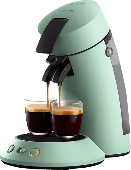 Kategorie: Kaffeemaschinen - Philips - GTIN:8720389058875 - SENSEO Original Plus Kaffeepadmaschine CSA210/35 SENSEO Original, unser Klassiker neu definiert. Wählen Sie auf einfache und intuitive Weise einen milden oder starken Kaffee auf Knopfdruck. Durch die einzigartige SENSEO Kaffee Boost Technologie wird das Beste aus dem Pad geholt für einen volleren, intensiveren Geschmack. Kaffee Boost Technologie Die Kaffee Boost Technologie verteilt das heiße Wasser über 45 Aromadüsen gleichmäßig über das SENSEO Kaffeepad. Holen Sie das Beste aus Ihrem Kaffeepad heraus, und genießen Sie das leckere Aroma von SENSEO Kaffee. Crema Plus Technologie Die Crema Plus Technologie sorgt für eine besonders feine und samtige Crema-Schicht. Für jede Tasse SENSEO Kaffee. Kaffeestärkewahl Kaffeestärkewahl für einen milden langen oder einen kurzen starken Kaffee. Große Auswahl an Spezialitäten und Geschmacksrichtungen SENSEO bietet Ihnen eine große Auswahl an Kaffeespezialitäten und Geschmacksrichtungen, jede mit ihrem ausgeprägten Aroma für Ihre persönlichen Vorlieben. Direktstart- und Abschaltfunktion Durch die Direktstart-Funktion wird Ihr Kaffee direkt nach dem Aufheizen der Maschine zubereitet. Danach schaltet sich Ihre SENSEO Kaffeemaschine automatisch aus, um Energie zu sparen. 1 oder 2 Tassen gleichzeitig Bereiten Sie eine oder zwei Tassen SENSEO Kaffee in weniger als einer Minute zu. - 59,00 Euro bei Media Markt Online Shop - gefunden von billiger.de Die grüne Variante ist ebenfalls sehr preiswert bei Media Markt erhältlich und bringt Farbe in die Küche. ![]() ![]() PHILIPS SENSEO CSA210/80 Original Plus 2-Tassen-Funktion, Milder oder starker Kaffee, 0.7L Wassertank, Padmaschine, Grün