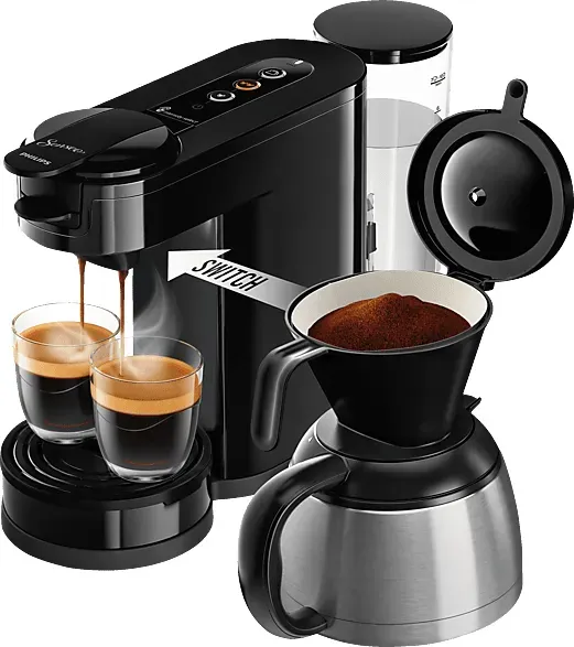 Kategorie: Kaffeemaschinen - Philips - GTIN:8720389013317 - Farbe & Material Farbe , schwarz, Material Gehäuse , Kunststoff, Handhabung & Komfort Wassertankkapazität , 0,7 l, Wasserfüllanzeige , Wasserstandsüberwachung, Programme & Funktionen Zeitfunktionen , Abschaltautomatik, Maße & Gewicht Breite , 21,3 cm, Tiefe , 21,7 cm, Höhe , 33 cm, Gewicht , 1,7 kg, Technische Daten Leistung , 1450 W, Spannung , 220-240 V, Pumpendruck , 1 bar, Stromversorgung Kabellänge , 0,80 m, Espresso/Siebträger Abtropfschaleneigenschaften , herausnehmbar, Hinweise WEEE-Reg.-Nr. DE , 83837745, Produktdetails Modellbezeichnung , Original HD6553/65, - 109,90 Euro bei OTTO - gefunden von billiger.de Die PHILIPS SENSEO HD6592/64 Switch 2in1 für 109.99 Euro bietet die Flexibilität, zwischen Pad- und Filterkaffee zu wählen. ![]() ![]() PHILIPS SENSEO HD6592/64 Switch 2in1 Pad- und Filterkaffeemaschine, Klavierlackschwarz