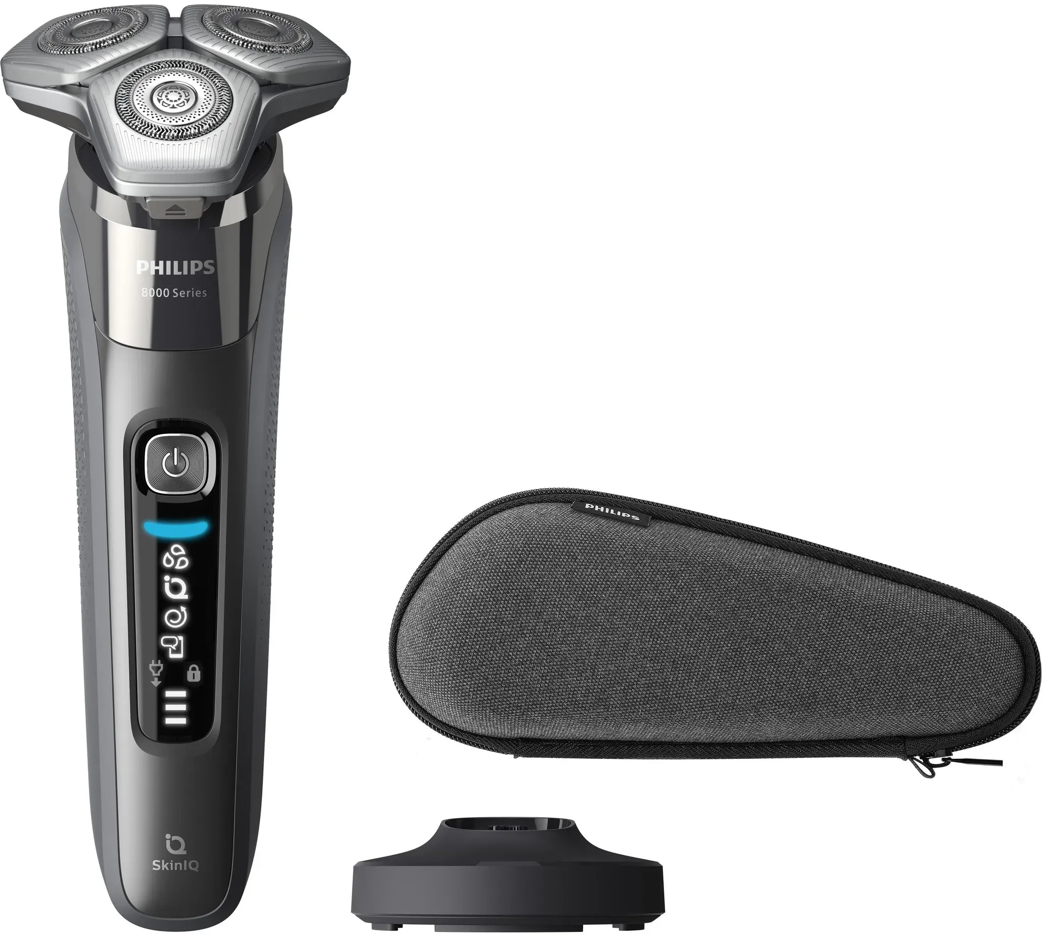 Auf Lager Versand durch AmazonPhilips Shaver Series 8000 ? Elektrischer Nass- und Trockenrasierer mit SkinIQ Technologie in Schwarz, ausklappbarer Trimmer, Ladestation, Reiseetui, Reinigungsbürste (Modell S8696/35)