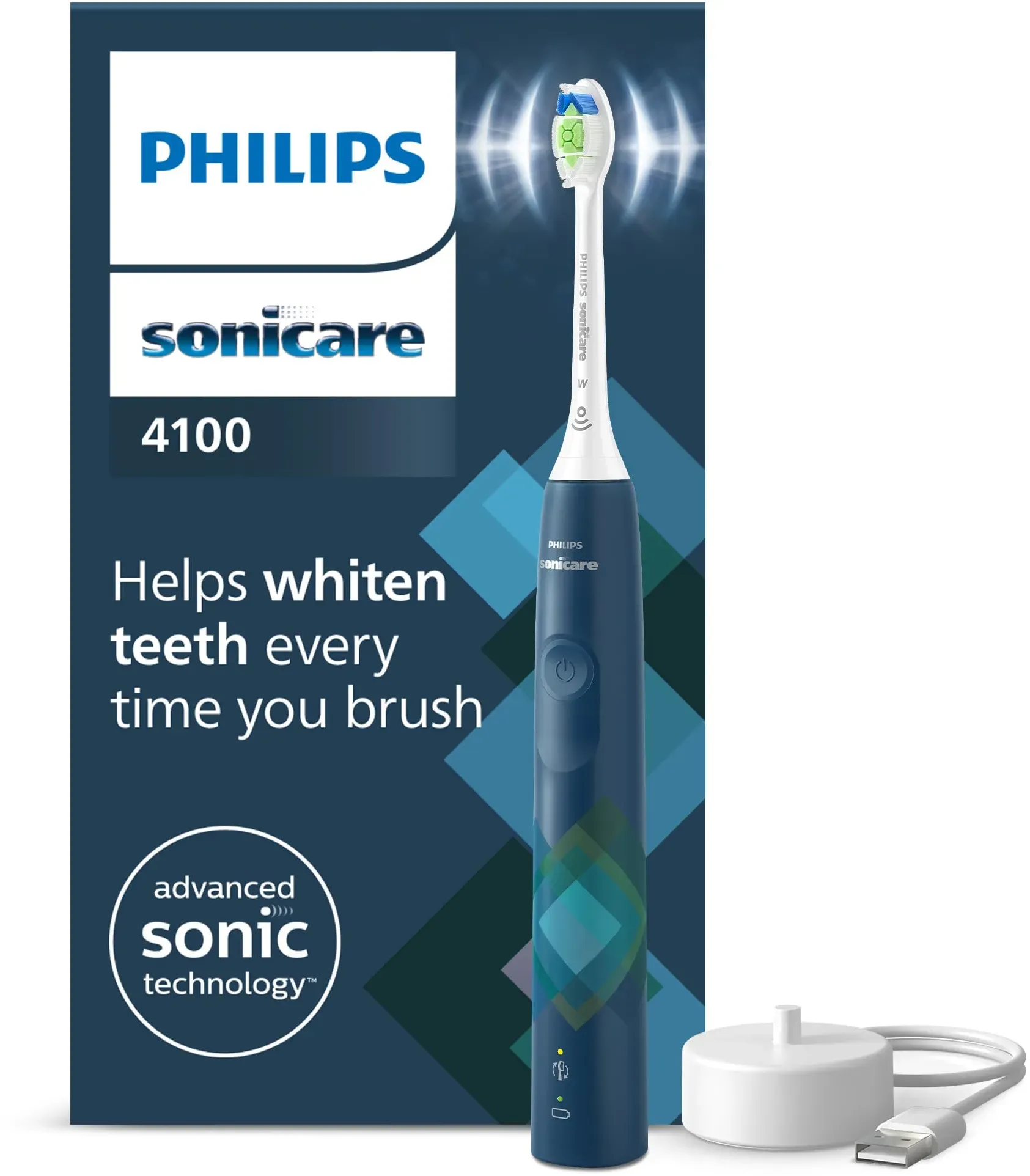 Zustand: Gebraucht - Schall Schallzahnbürsten - Philips Philips Consumer Lifestyle B.V. - HX3689/42 - EAN: 8720689034807 - Elektrische Zahnbürste für Erwachsene für eine effiziente Mundpflege: Sorgt mit dem W2 Optimal White Bürstenkopf vom ersten Tag an für weißere Zähne Sanfte und dennoch effiziente Reinigung mit der fortschrittlichen Schalltechnologie, die Wasser in die Zahnzwischenräume und entlang des Zahnfleischrandes spült Sicher und sanft: Wenn Sie zu viel Druck ausüben, pulsiert das Handstück leicht und erinnert Sie daran, den Druck zu verringern, wodurch Zähne und Zahnfleisch geschützt werden EasyStart für eine allmähliche, sanfte Erhöhung der Putzleistung, 2-Minuten-Timer für die empfohlene Putzzeit von 2 Minuten und 4-Quadranten-Timer für eine bessere Einhaltung der Putzeinstellungen Die von Zahnartzpraxen am häufigsten empfohlene Schallzahnbürstenmarke weltweit²: Profitieren Sie von der Expertise von Philips, um Zähne und Zahnfleisch optimal zu pflegen Das Set umfasst 1x Philips Sonicare 4100 elektrische Zahnbürste mit Schalltechnologie, 1x W2 Optimal White Bürstenkopf, 1x Ladegerät - 4 Händler im amazon.de Marketplace Dies ist das günstigste Angebot für eine Philips Sonicare 4100 in Blau, ideal für preisbewusste Käufer. ![]() ![]() Philips Sonicare 4100 HX3689/42 elektrische Schallzahnbürste blau