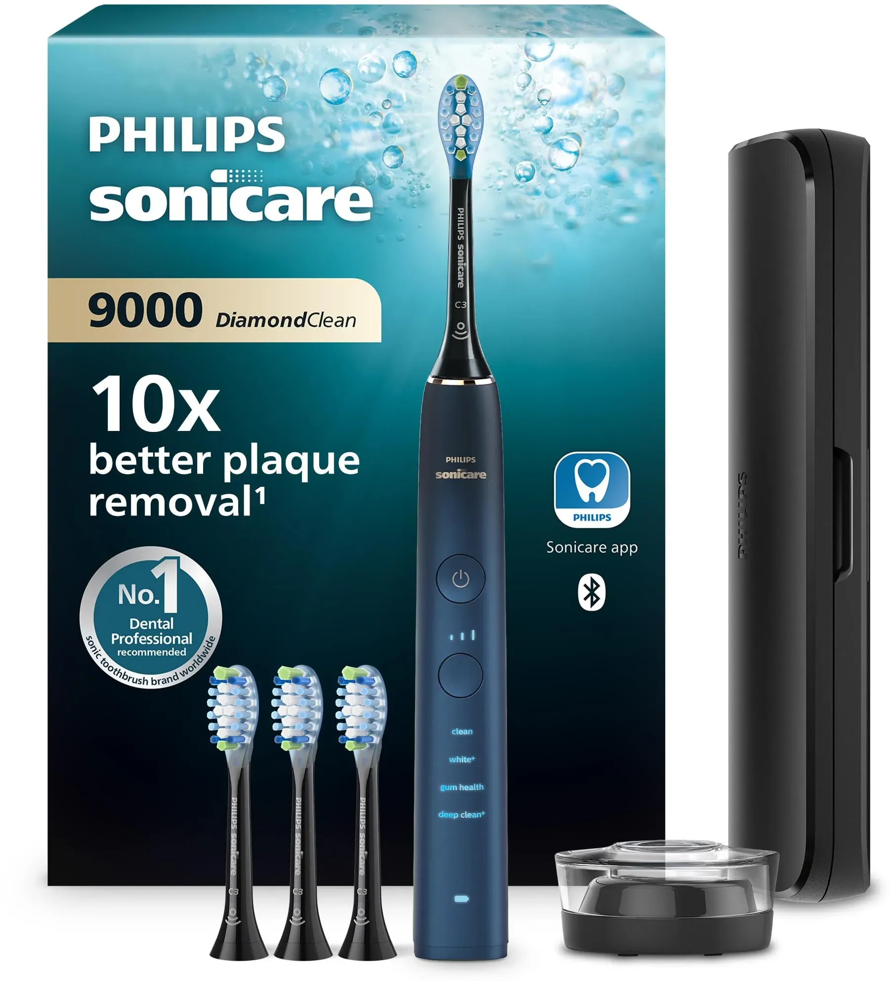 Zustand: Neu - Schall Schallzahnbürsten - Philips Philips Consumer Lifestyle B.V. - HX9911/89 - EAN: 8720689000987 - Ein mühelos weißes Lächeln: Mit der Philips Sonicare DiamondClean 9000 Serie entfernen Sie Oberflächenflecken für weißere Zähne in nur 3 Tagen* Premium Plaque Control Bürstenköpfe reinigen und bleichen Ihre Zähne auf Außergewöhnliche Reinigung: Wählen Sie aus 4 verschiedenen Putzmodi, um Ihr Lächeln aufzuhellen und die Gesundheit des Zahnfleisches zu verbessern, Clean, Deep Clean+, Gum Health und White+ helfen dabei, Ihre Zähne und Ihr Zahnfleisch zu reinigen Verbessern Sie die Reinigung: Verwenden Sie die Sonicare App und die Premium Plaque Control Bürstenköpfe, um sicherzustellen, dass Sie den richtigen Modus und die richtige Intensität für Sie verwenden und bis zu 10x mehr Plaque entfernen als eine Handzahnbürste Fortschrittliche Sonicare-Technologie: Die DiamondClean 9000-Serie verwendet leistungsstarke Schallvibrationen bei 62.000 Impulsen pro Minute, um Plaque-bekämpfende Blasen zwischen Ihren Zähnen und Ihrem Zahnfleisch zu treiben, für eine sanfte Reinigung Die Sonderedition enthält: 1x Philips Sonicare 9000 Serie elektrische Zahnbürste in dunkelblau, 4 x C3 Premium Plaque Control Bürstenköpfe, 1x Reisetasche und 1x Ladegerät Boden und Puck - bei Amazon.de Ein günstiges Angebot für die Philips Sonicare DiamondClean 9000, ideal für den Einstieg in die Premium-Klasse. ![]() ![]() Philips Sonicare DiamondClean 9000 HX9911/79