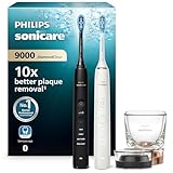 Auf Lager Versand durch AmazonPhilips Sonicare DiamondClean 9000 elektrische Zahnbürste, Schallzahnbürste mit App, Andruckkontrolle, 4 Putzmodi, 3 Intensitätsstufen, Ladeglas, Schwarz und Roségold, Zweierpack, Modell HX9914/57