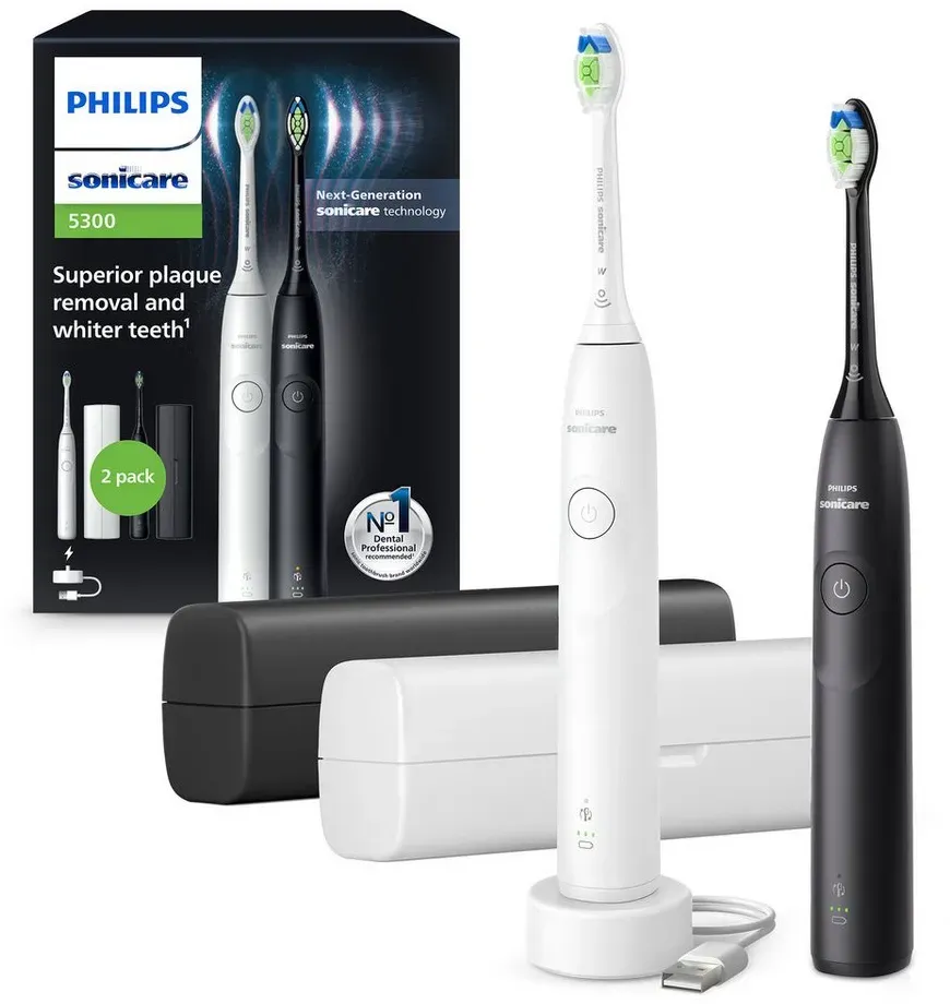 Sonicare - EAN: 8720689023009 - Die Philips Sonicare 5300 verfügt über Sonicare Technologie der nächsten Generation, 2 Intensitätsstufen und eine integrierte Andruckkontrolle, die Sie warnt, wenn mit zu viel Druck geputzt wird. Mit dem W2 Optimal White Bürstenkopf für strahlend weiße Zähne. Mit Reiseetui. - bei philips.de - aus Yadore Produktdaten Dieses Amazon-Angebot hebt die neue Technologie hervor und bietet eine schwarze Variante mit umfassenden Funktionen. ![]() ![]()