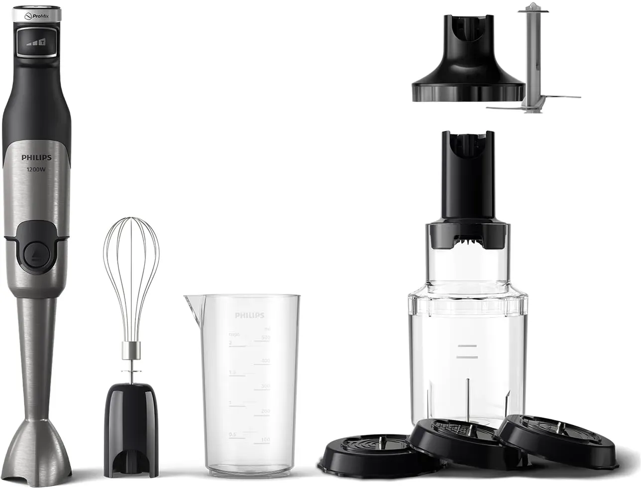 Auf Lager Versand durch AmazonPhilips 5000-Serie Stabmixer inkl. Schneebesen, Spiralizer, XL-Zerkleinerer - 1200 W Leistung. ProMix-Technologie. LED-Geschwindigkeitsanzeiger. Stufenlose Geschwindigkeitseinstellung (HR2684/00)