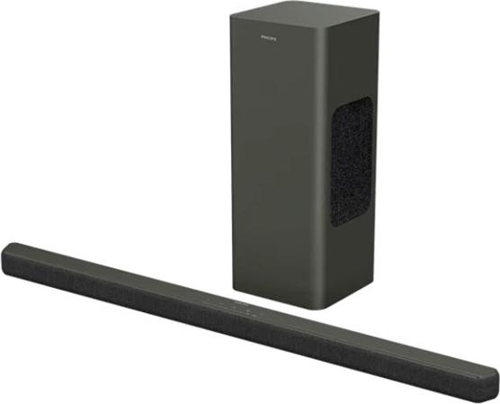 EAN: 8718863700211 - Philips Soundbar 2.1 TAB8200/10 mit kabellosem Subwoofer kraftvoller Heimkino-Sound überblick & HighlightsDie Philips Soundbar 2.1 TAB8200/10 liefert beeindruckenden, raumfüllenden Klang für Filmabende, Gaming und Musik. Ausgestattet mit einem kabellosen Subwoofer und einer maximalen Leistung von 320 W sorgt sie für klare Höhen, satte Mitten und druckvolle Bässe. Dank DTS Virtual:X und Dolby Atmos erleben Sie packenden 3D-Sound, selbst in kleineren Räumen.Sound & TechnikDie Soundbar bietet moderne Audiotechnologien wie DTS Virtual:X für erweiterten Raumklang und Dolby Atmos-Unterstützung für echte Filmton-Atmosphäre. Vier voreingestellte EQ-Klangmodi und eine spezielle Gesprächsoptimierung erlauben individuelle Anpassung an Inhalte und Vorlieben. Mit einer Spitzenleistung von max. 320 W liefert die Kombination aus Soundbar und Subwoofer jederzeit souveräne Dynamik.Anschlüsse & KonnektivitätFlexible Anschlussoptionen machen die Integration in Ihr Home-Entertainment-System kinderleicht: HDMI eARC für verlustfreie Tonübertragung, optischer Anschluss, AUX und USB. Zusätzlich bietet die Soundbar Bluetooth 5.3 inklusive LE-Audio-Unterstützung für stabile kabellose Verbindungen zu Smartphone oder Tablet. Mit Philips EasyLink 3.0 steuern Sie mehrere Geräte bequem per HDMI-CEC.Design, Bedienung & AppDas ultraflache Design wurde speziell für niedrige Ambilight-TVs entwickelt und fügt sich unauffällig ins Wohnzimmer ein. Bedient wird die Soundbar über die ... ![]() kaufland.d e Philips TAB8200/10 Soundbar 2.1 mit Subwoofer, Dolby Atmos