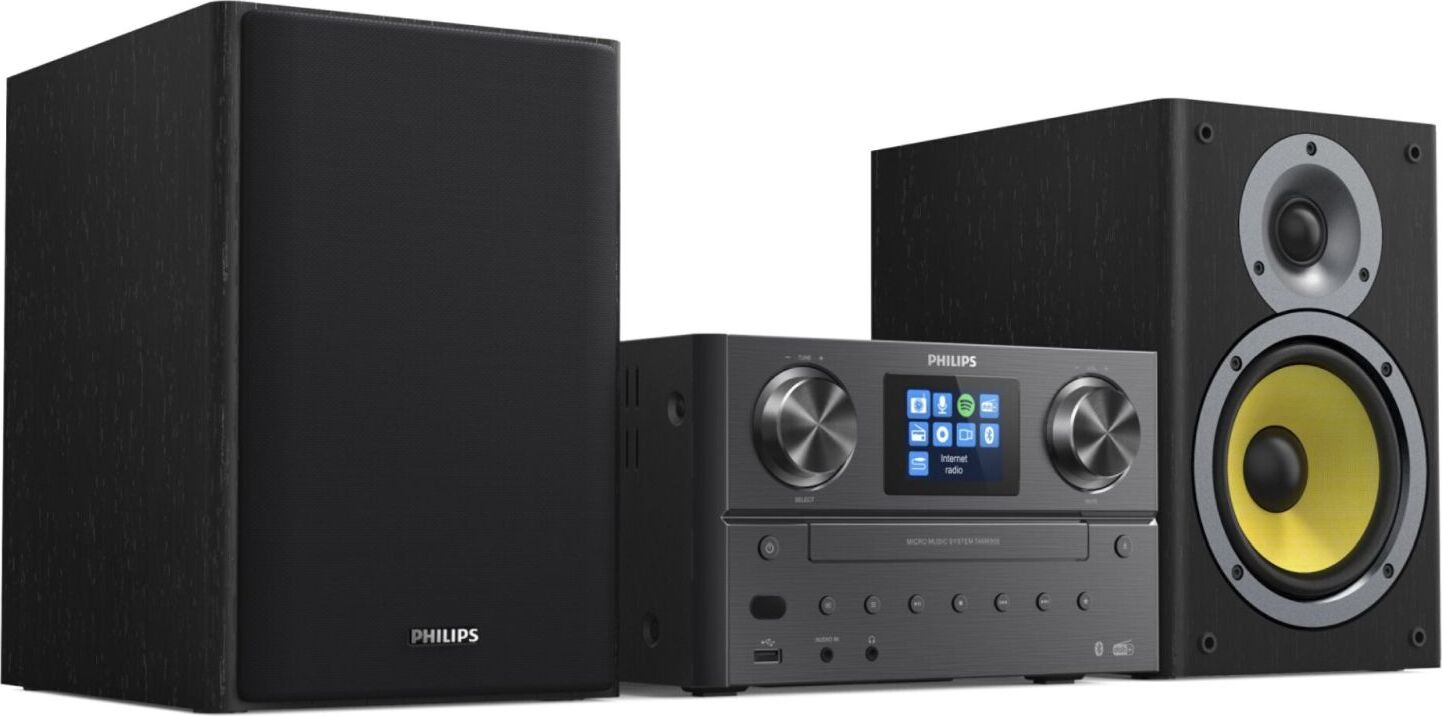 Auf Lager Versand durch AmazonPhilips TAM8905 Mikro-Musiksystem 100W, Bluetooth, Spotify Connect, Internetradio, DAB+, CD-Player, USB, Bassreflex-Lautsprecher, Digitale Klangregelung, klassisches Design mit Farbdisplay