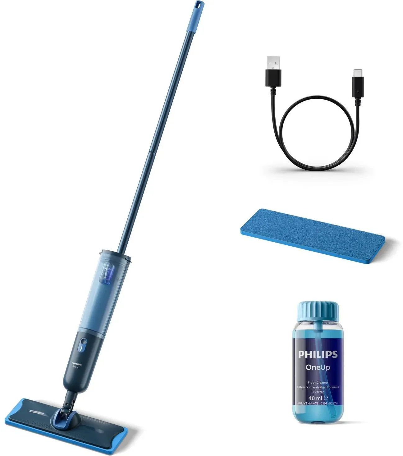 vorrätig-in ein bis drei Werktagen bei dirPhilips Akku-Wischmopp OneUp elektrischer Wischer 5000 Series XV5113/01 70 min Akku-Laufzeit, inkl. 1 Pad und 40 ml Reiniger, 59782963-0 Blau