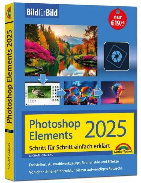 Verfügbarkeit: Bis zu 4 Werktage - Kategorie: Bücher - Markt + Technik - GTIN:9783988100399 - Photoshop Elements 2025 Bild für Bild erklärt - sehen und können Mit Photoshop Elements 2025 haben Sie von der schnellen Korrektur im Fotoeditor bis zur gezielten Retusche von Bildteilen vielseitige Möglichkeiten der Fotobearbeitung, mit denen Sie dieses Buch in anschaulichen Schrittanleitungen vertraut macht. Das Nachschärfen Ihrer Digitalfotos, das Entfernen von Farbstichen, das Erstellen von Collagen, die Arbeit mit Ebenen, der kreative Einsatz von Filtern und Effekten sowie die neuen KI-Funktionen werden Bild für Bild erklärt. So erfahren Sie Schritt für Schritt, wie Sie mit Photoshop Elements 2025 zu brillanten Bildern kommen. Aus dem Inhalt: - Neuerungen in Photoshop Elements 2025 - Photoshop Elements kennenlernen - Neue KI-Funktionen in Photoshop Elements 2025 - Von der Kamera auf den Rechner - Benutzeroberfläche, Werkzeuge, Arbeitstechniken, Voreinstellungen - Fotos schnell korrigieren - Fotos aufwendig bearbeiten - Komplexe Optimierungen - Mit Texten arbeiten - Bildteile auswählen und bearbeiten - Fotokreationen und Collagen erstellen - Tolle Filter und Effekte für Ihre Bilder - Ebenen und Ebenenstile gekonnt einsetzen Der Autor Michael Gradias ist Grafikdesigner, leidenschaftlicher Fotograf, Nikon-Spezialist und bekannter Autor. Er hat viele erfolgreiche Fachbücher und Artikel rund um das digitale Bild verfasst. Leser schätzen seine klaren Erklärungen und ... Dieses Angebot ist empfehlenswert, da es das beliebte "Photoshop Elements 2025 for Dummies" Buch zu einem guten Preis direkt von Amazon.de anbietet, ideal für Anfänger. ![]() ![]()
