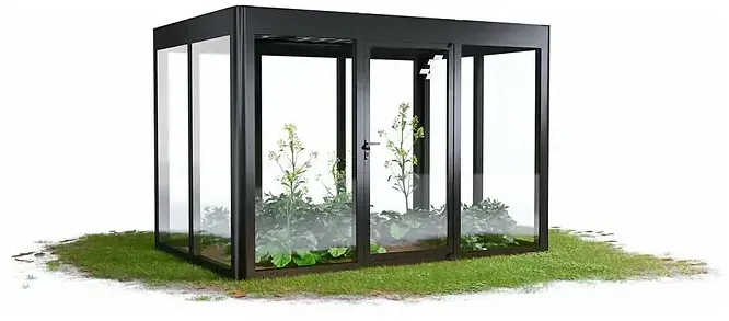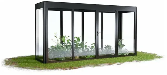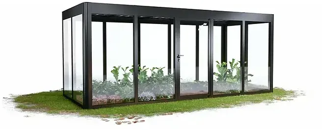 Kategorie: Gartenhäuser - sunelements - GTIN:9120131361533 - # Entdecken Sie das SunElements Gewächshaus SunGarden Energy - ein Gewächshaus der Zukunft! Das besondere Gewächshaus besteht aus hochqualitativen Materialien. Mit 6 mm klarem Acrylglas an den Seitenwänden und einem Dach, das mit fünf 275-Watt-Photovoltaik-Modulen mit 40 % Transparenz ausgestattet ist, kombiniert es elegantes Design mit Solarenergie. Die Beschattung der Photovoltaik-Module und die klaren Seitenwände, schaffen einen stilvollen Ort für Genießer mit Durchblick. Die selbsttragende Aluminiumkonstruktion mit einer einzigartigen Profilgeometrie gewährleistet Sicherheit und Stabilität, sowie eine lebenslange Freude ohne zusätzliche Wartung! Ein durchdachtes Click-System ermöglicht ein einfaches Aufbauen . Ein stilvoller Aluminiumrahmen, hochwertige Türgriffe und ein robustes, verschließbares Zylinderschloss verleihen Ihrem Sun Garden Gewächshaus eine besondere Eleganz. Die großzügige Einzeltür mit den Durchgangsmaßen von (B x H) 90 cm x 197 cm ist flexibel zwischen zwei Stützen an jeder Stelle montierbar. Der Türanschlag nach links oder rechts kann bei der Montage selbst gewählt werden. Das moderne Gewächshaus mit Flachdach hat eine Grundfläche von 12,8 m2 . Es ist mit einer integrierten Lüftung im Dachbereich mit Stellhebel ausgestattet. Mit einer beeindruckenden Dachlastkapazität von über 150 kg/m2 bietet der Sun Garden außergewöhnliche Stabilität und Sicherheit für Ihre Pflanzen, selbst unter extremen ... Dieses Gewächshaus bietet eine integrierte Photovoltaiklösung für den Garten und ist ideal für Nutzer, die eine autarke Energieversorgung wünschen. ![]() ![]() SunElements Gewächshaus SunGarden Energy 4.3 (Außenmaß inkl. Dachüberstand (B x T): 443 x 338 cm, Anthrazit-Metallic, Materialspezifizierung Dach: Acrylglas mit Photovoltaikmodulen)