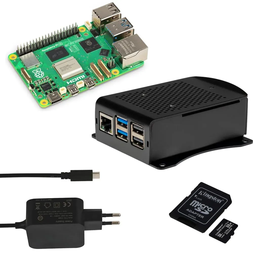Verfügbarkeit: Auf Lager - Kategorie: Sonstige Komponenten - db-tronic - GTIN:9504329933175 - œ” Raspberry Pi 5 4GB Starter-Kit €“ Enthält den leistungsstarken Raspberry Pi 5 mit 4GB RAM, ein 27W USB-C Netzteil, ein schwarzes Gehäuse mit Lüfter, eine 64GB Speicherkarte und ein 1m 4K Micro HDMI Kabel €“ alles in einem Set. œ” Maximale Leistung €“ Der Raspberry Pi 5 bietet dank 8GB RAM eine starke Performance für vielseitige Anwendungen wie Home-Server, Retro-Gaming, IoT-Projekte und mehr. œ” Effiziente Kühlung €“ Das Gehäuse mit Lüfter sorgt für eine optimale Temperaturregelung und verhindert überhitzung bei intensiven Anwendungen. œ” Schnelle & zuverlässige Stromversorgung €“ Das 27W USB-C Netzteil liefert stabile und effiziente Energie für maximale Leistung und sicheren Betrieb. œ” Perfekt für 4K-Anwendungen €“ Mit dem 1m 4K Micro HDMI Kabel kannst du deinen Raspberry Pi 5 an hochauflösende Monitore und Fernseher anschließen. - 114,90 Euro bei Amazon Marketplace CE - gefunden von billiger.de Ein offizielles Raspberry Pi 5 Desktop Kit mit 4GB RAM, das eine komplette Lösung für den sofortigen Einsatz bietet. ![]()