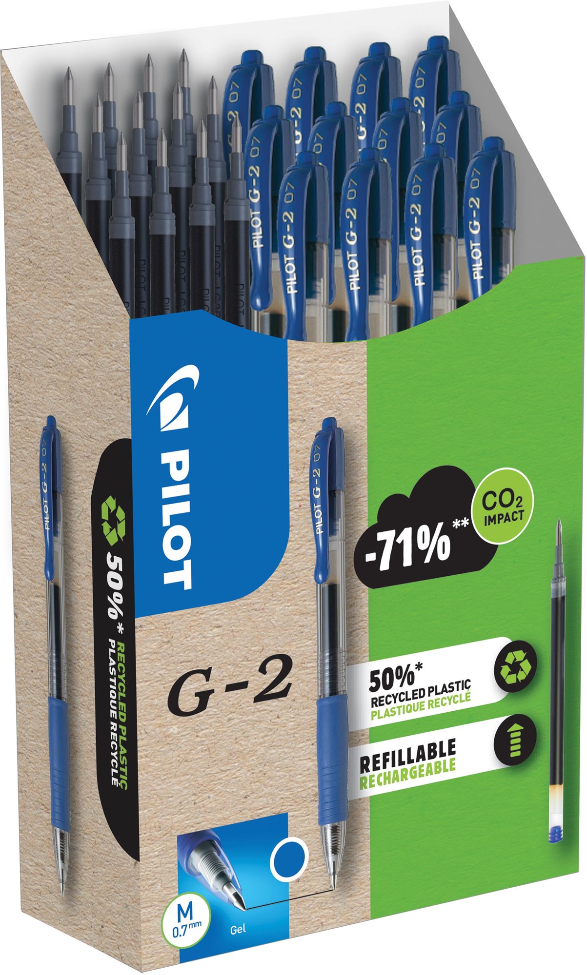 Auf Lager Versand durch AmazonPILOT - 6er-Set G2 - Nachfüllbarer Gelschreiber mit Druckmechanik - Schreibkomfort ausgezeichnet - Blau - Mittelspitze