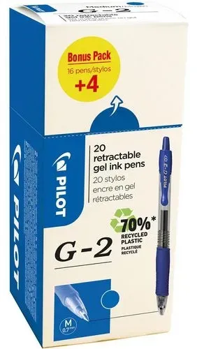 PILOT - EAN: 3131910556183 - Roller - Tinte: gel, Farbe der Füllung: blau, für Rechtshänder und für Linkshänder, 24 Stück in der Packung, Material: Kunststoff, Spurbreite: 0,32 mm, Spitzenbreite: 0,7 mm, mit Druckknopf, ersatzpatrone im Lieferumfang Grundlegende Vorzüge des Rollers PILOT G-2, blau, 12 Stück + 12 Minen Der keramische Stift oder auch Roller von PILOT erfreut sich als Schreibgerät zunehmender Beliebtheit Kombiniert die positiven Eig - bei alza.de - aus Yadore Produktdaten Dieses 20er-Pack blauer Gelschreiber mit 0,4 mm Strichstärke und hohem Recyclinganteil ist eine umweltfreundliche Großpackung. ![]() ![]() Pilot Pen Pilot G2 Einziehbar Gelschreiber Blau 0.4 mm Mittel Kegelförmig Nachfüllbar 70% Recycelt 20 Stück