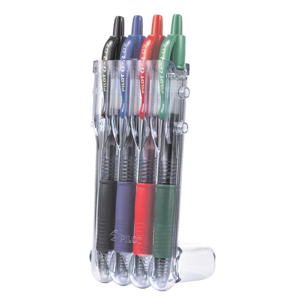 Auf Lager Versand durch AmazonPILOT G2-7 Gelschreiber Set - 4 Stück - Farbe Schwarz, Blau, Rot, Grün - weiche Gelstifte 0,36mm Strichstärke, angenehme Schreibführung und kratzfreies, präzises Schriftbild, mit austauschbarer Mine
