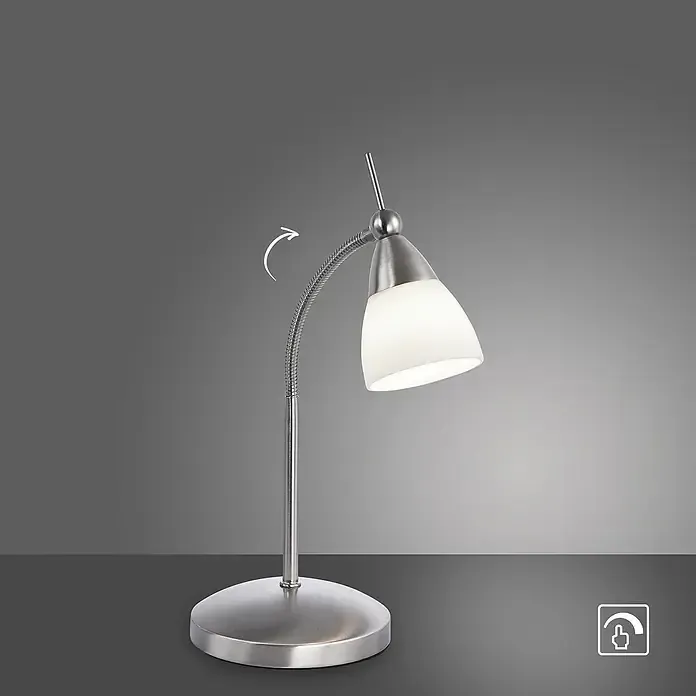 Beleuchtung Innenbeleuchtung Tischlampen - EAN:4012248289587 - Die Tischleuchte besticht durch ihr schönes, fast klassisches Design. Sie ist mit einem 3-Stufen Touchdimmer versehen. Über diesen Dimmer lässt sie sich bequem in drei Stufen dimmen und schalten. Sie wird inklusive einem LED-Leuchtmittel geliefert und schafft mit ihrer warmweißen Lichtfarbe ein behagliches Wohlfühlambiente in Ihrem Wohnraum. Sie haben die Möglichkeit, dank des Flexarms die Leuchte in der Höhe zu verstellen. Durch das opalmatte Glas gibt sie ein schönes und blendfreies Licht ab und könnte auch zu einem edlen Accessoire in Ihrem Wohnbereich werden. Dank der verwendeten LED-Technik zeichnet sich die Leuchte als äußerst energiesparend aus und überzeugt dabei mit einer geringen Wärmeentwicklung sowie hohen Lebensdauer. - gefunden von Kelkoo ![]() ![]()