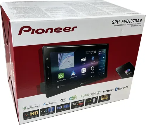 Verfügbarkeit: Gewöhnlich versandfertig in 2 bis 3 Tagen - Kategorie: Car-Multimedia-Systeme - Pioneer - GTIN:4988028021664 - NAHTLOSE SMARTPHONE-INTEGRATION: Mit Apple CarPlay und Android Auto (beide drahtlos oder kabelgebunden nutzbar) können Sie Ihr Smartphone mühelos verbinden und alle wichtigen Apps sowie Navigation bequem über das 10,1-Zoll-Display steuern. BRILLANTE ANSICHT UND EINFACHE BEDIENUNG: Der kapazitive 10,1-Zoll-Touchscreen bietet eine gestochen scharfe Darstellung und eine intuitive Bedienung, die sich dank des großen Bildschirms auch während der Fahrt leicht steuern lässt. DAB+ DIGITALRADIO FüR BESTE SOUNDQUALITäT: Genießen Sie rauschfreien Radioempfang mit DAB+ und erleben Sie eine Vielzahl von Sendern in digitaler Qualität €“ ideal für Musikliebhaber. EINFACHE INSTALLATION IN VIELEN FAHRZEUGEN: Dank des schwebenden 2-DIN-Designs passt sich das Gerät flexibel in verschiedenste Fahrzeugmodelle ein und macht die Nachrüstung auch in älteren Fahrzeugen unkompliziert. HI-FI-SOUND DER EXTRAKLASSE: Der 48-Bit-Dual-Core-DSP sorgt für eine professionelle Klangabstimmung, die Ihnen echten Hi-Fi-Sound liefert, egal welche Musikrichtung Sie bevorzugen. - 993,97 Euro bei Amazon Marketplace CE - gefunden von billiger.de Dieses Angebot ist ein Standard "Pioneer SPH-EVO107DAB-UNI" mit umfangreicher Ausstattung wie Wi-Fi, Bluetooth, Apple CarPlay, Android Auto und DAB+. ![]() ![]() Pioneer SPH-EVO107DAB-UNI - 1-DIN Mediacenter und Navigationsgerät, kapazitives 10,1" Touchpanel, mit Wi-Fi, Bluetooth, Apple CarPlay, Android Auto und DAB+, 13-Band-Grafikequalizer