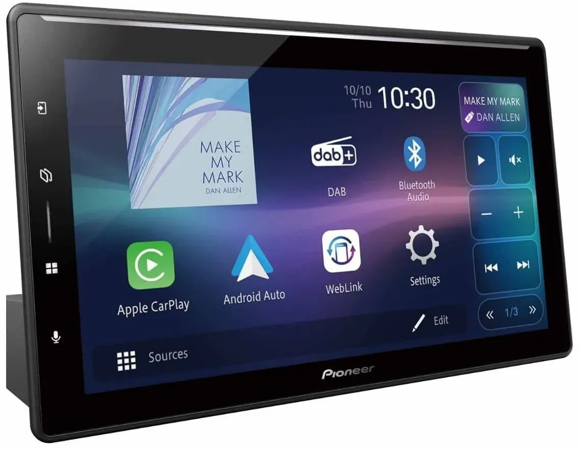 Kategorie: Car-Multimedia-Systeme - Pioneer - SPH-EVO107DAB Das Wi-Fi -fähige 10,1-Zoll-Gerät SPH-EVO107DAB ist als 1- oder 2DIN Variante sowie in vielen fahrzeugspezifischen Versionen erhältlich - jeweils ausgestattet mit Apple CarPlay (kabellos und kabelgebunden), Android AutoTM (kabellos und kabelgebunden), DAB+ Digitalradio und Bluetooth . Neu ist u.a. ein LED-Streifen, der bei der Navigation assistiert und Richtung und Distanz zum nächsten Abbiegevorgang anzeigt. - 861,20 Euro bei Toms Car HiFi - gefunden von billiger.de TECHNIKdirekt bietet hier das "Pioneer SPH-EVO107DAB-UNI" zu einem attraktiven Preis an. ![]() ![]()