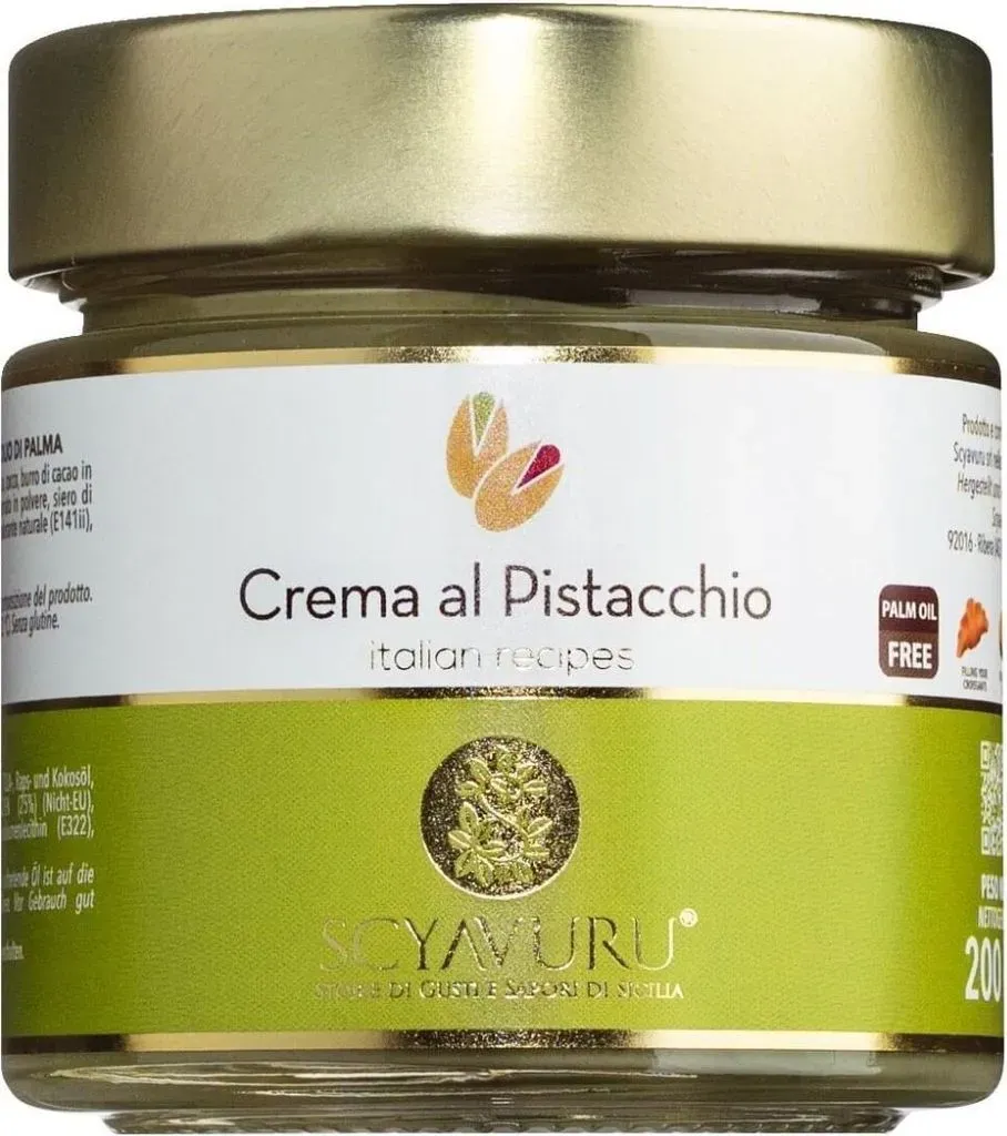 Verfügbarkeit: 1-4 Werktage - 44,95 €/kg - Kategorie: Sonstige Brotaufstriche - Scyavuru - GTIN:8057977541090 - Der feine, nussige Geschmack von Pistazie in der süßen Creme mit leichtem Salzton passt zu Weißbrot, Brioche, Panettone und allen eleganten Tartes beispielsweise mit Haselnuss und roten Beeren.Inhalt 1 Glas, 200 GrammSüßer Pistazienaufstrich ohne Palmöl - Zutaten: Zucker, pflanzliche öle und Fette (Sonnenblume, Soja-, Raps-, Kokosöl, Kakaobutter) (in veränderlichen Gewichtsanteilen), Pistazien25%, Magermilchpulver, Molkepulver, Emulgator: Sonnenblumenlecithin, Farbstoff: E141ii, Aroma VanillinKann Spuren von anderen Schalenfrüchten und Erdnüssen enthaltenNährwerteje 100g/100mlEnergie (kJ/kcal)(2.456 / 586)Fett - davon gesättigte Fettsäuren:40,1 g 14,2 gKohlenhydrate - davon Zucker:45,3 g 44,7 gEiweiß10 gSalz0,38 gVerantwortlicher Unternehmer: Az. Agricole Scyavuru s.r.l, Via Bonifacio, 9, (IT) 92016 Ribera (AG)Informationen zum Unternehmen €žScyavuru€œDrei Plantagen haben sich in Sizilien zusammengeschlossen, um ihre reifen, vor Ort geernteten Früchte zu Marmeladen und Konfitüren zu verarbeiten. Der Geschmack ist dementsprechend intensiv aromatisch, ob bei Zitrusfrüchten oder Beeren. Auch feine Nuss- und Schokoladencremes sowie Pesti werden von Scyavuru schonend und mit ausgesuchten Zutaten hergestellt. - 8,99 Euro bei Kaufland.de - gefunden von billiger.de Diese Pistaziencreme aus Griechenland bietet eine proteinreiche Alternative. ![]() ![]() Pistaziencreme 250g - Protein aus eBay Griechenland Pistazienpaste Pistazienbutter