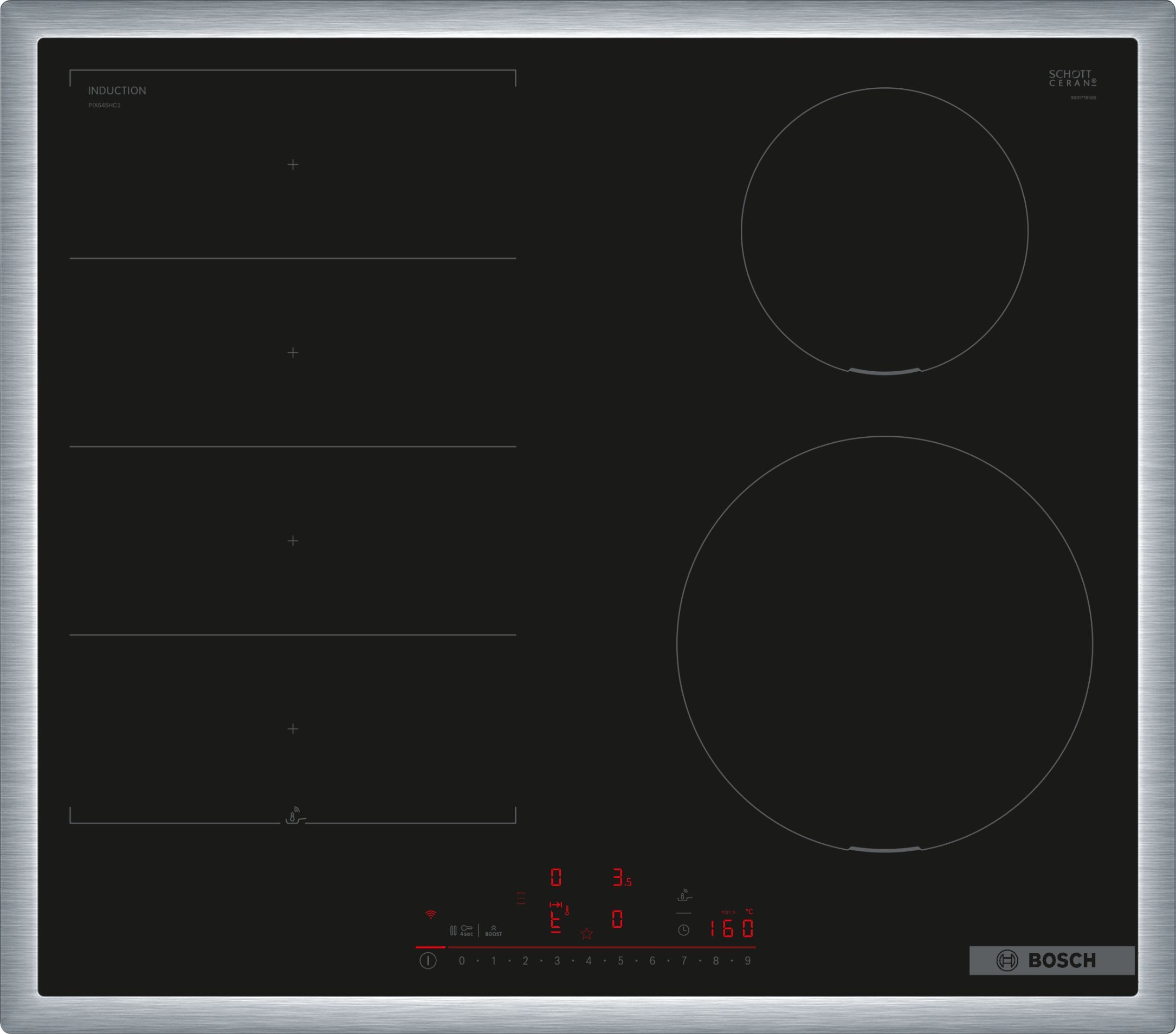Bosch - EAN: 4242005394135 - Bosch Induktionskochfeld PIX645HC1E | Serie 6 | 60 cm | FlexInduction | 4 Kochzonen | PowerBoost | Edelstahl-Rahmen - bei smartgoods.de - aus Yadore Produktdaten ![]() Bosch PIX645HC1E Serie 6, Autarkes Kochfeld