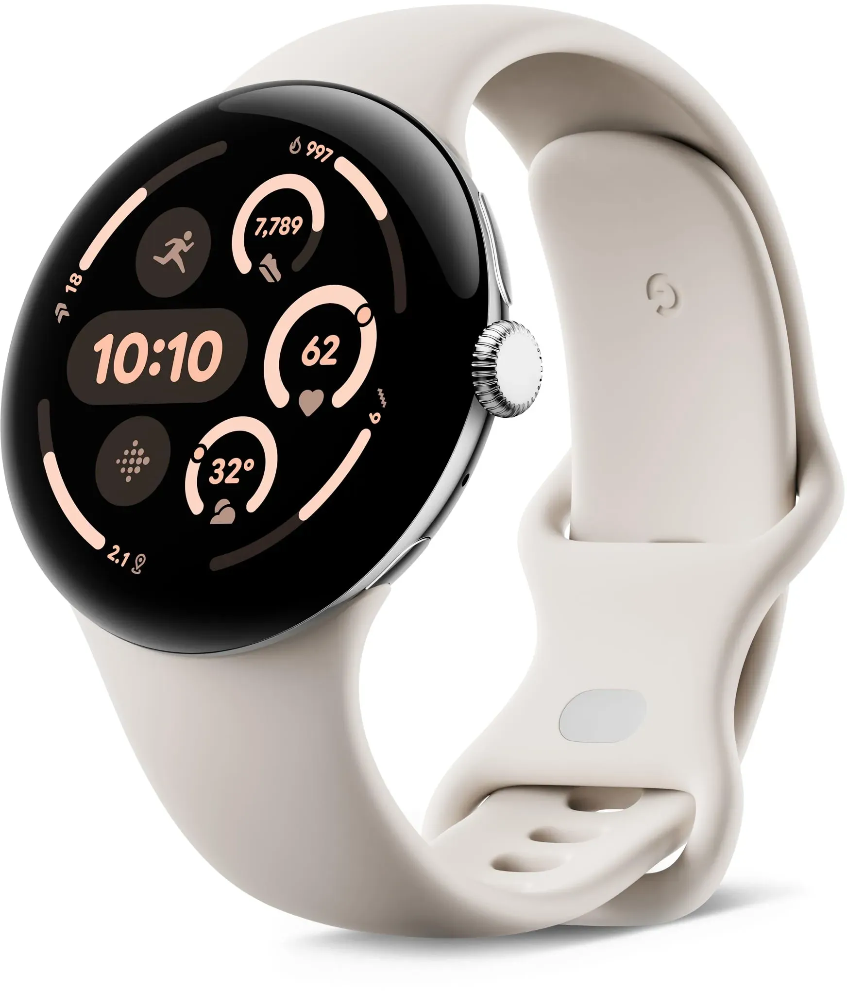 Google Google Pixel Watch 3 Smartwatches - EAN:0840353907805 - Gewährleistung, Lieferung in 1-2 Werktagen +++ ZUSTAND: Technisch einwandfrei, optisch top gepflegt und ideal zum Verschenken. Unsere Kunden sind regelmäßig positiv beeindruckt ... LIEFERUMFANG: Google Pixel Watch 3 [WiFi + LTE, inkl. Kautschuk-Armband grau] 45mm Aluminiumgehäuse grau, Ladekabel, Armband, Armbandverlängerung, OVP +++ MwSt. nach Paragraph §25a des UStG. nicht ausweisbar +++ Händler aus Deutschland, Lieferung auch an Packstationen möglich. - gefunden von Kelkoo Eine gute Wahl für die LTE-Version in Weiß/Beige mit Silbergehäuse, die Konnektivität unterwegs ermöglicht. Buyzoxs.de