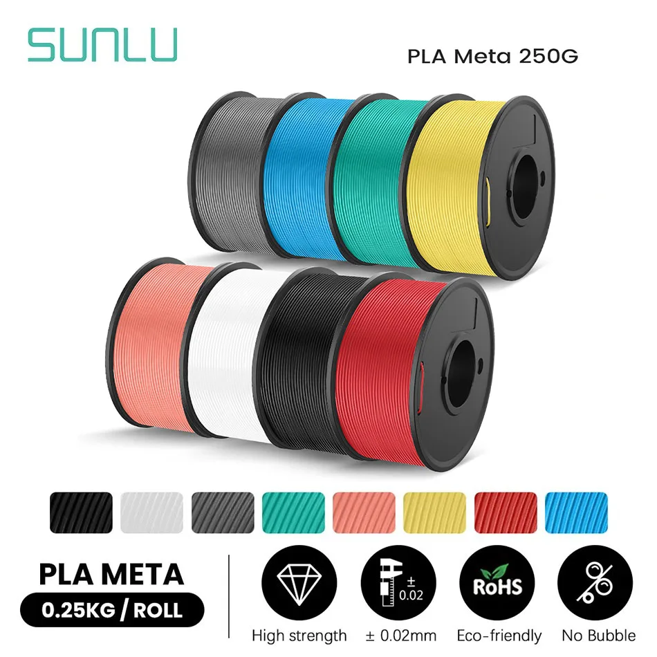 SUNLU - Sunlu 8 stücke 250g/Rolle Pla Meta Filament 5 Rollen schnelles Drucken 1,75mm keine Blase biologisch abbaubar gute Liquidität gute Liquidität - bei de.aliexpress.com - aus Yadore Produktdaten Ein ähnliches Angebot wie das vorherige, ebenfalls von SUNLU, das 8 Rollen à 250g in verschiedenen Farben für mehr Vielfalt bietet. ![]() ![]() SUNLU PLA - Meta 250g*8 eBay 3D Drucker Filament 1.75mm PLA Meta 0.25KG/Spule,8 Farben