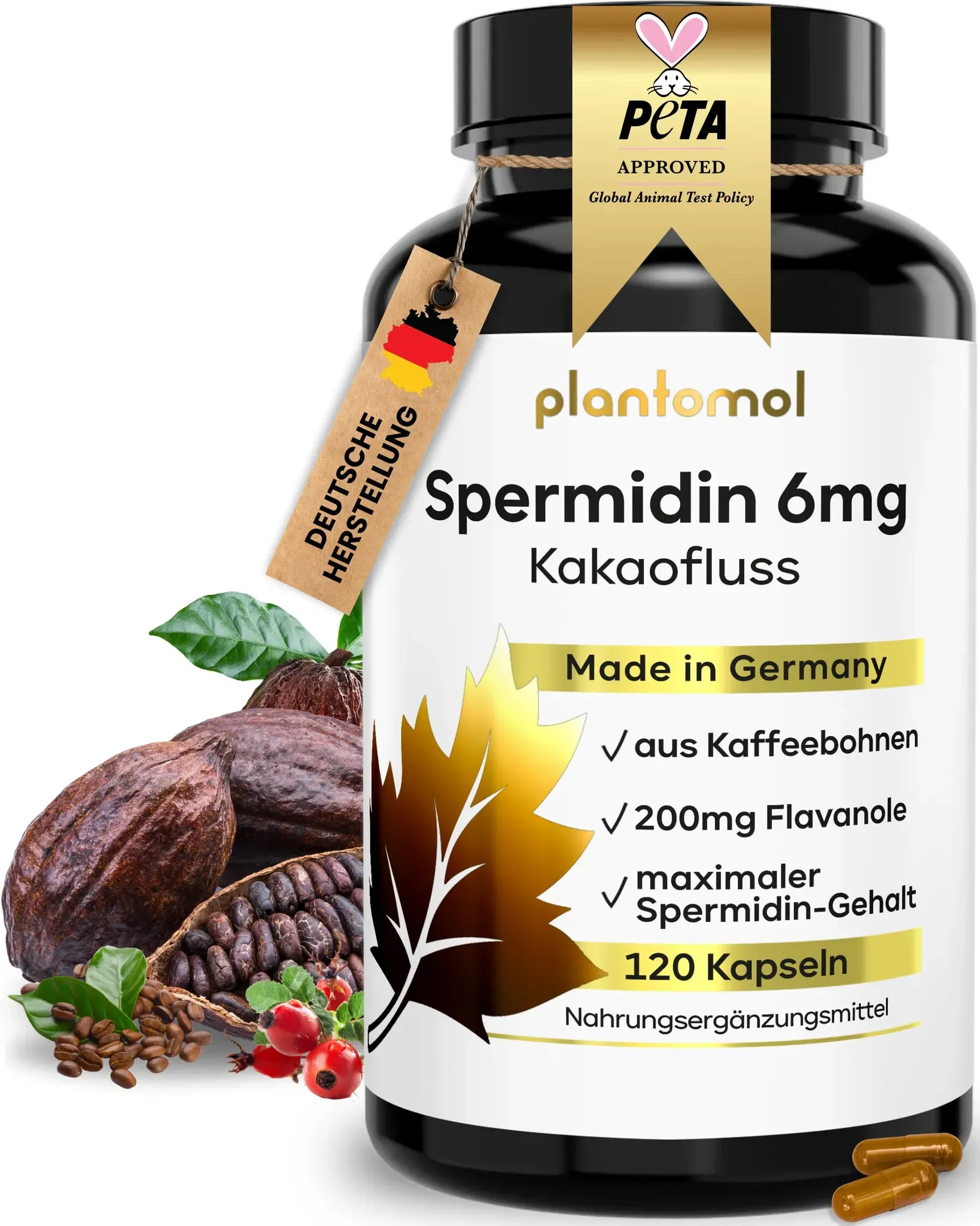 Verfügbarkeit: Auf Lager - Kategorie: Nahrungsergänzungsmittel - plantomol - GTIN:8721008368702 - 90 Spermidin Kapseln hochdosiert mit Zink Kupfer & 260mg Silizium hochdosiert - Nur 1 Kapsel/Tag = 90 Portionen = 3 Monatsvorrat Gute Aufnahme: 6mg Spermidine hochdosiert aus Sojabohnen-Extrakt - natürlich 100% glutenfrei und vegan Unsere Spermidin 6mg Kapseln werden nach den höchsten Qualitätsstandards in Deutschland hergestellt Ohne Farbstoffe, Füllstoffe, künstliche Aromen oder Gelatine. Zudem glutenfrei, laktosefrei, GMO-frei & ohne Konservierungsstoffe - Spermidin hochdosiert vegan Probiere die plantomol Spermidin Glanzmoment Kapseln aus! - 17,99 Euro bei Amazon Marketplace Health & Personal Care - gefunden von billiger.de ![]() ![]() plantomol 120 Spermidin Kapseln hochdosiert - Spermidin 6mg & Kakaoflavanole mit Vitamin C aus Hagebutte - 2 Monatsvorrat