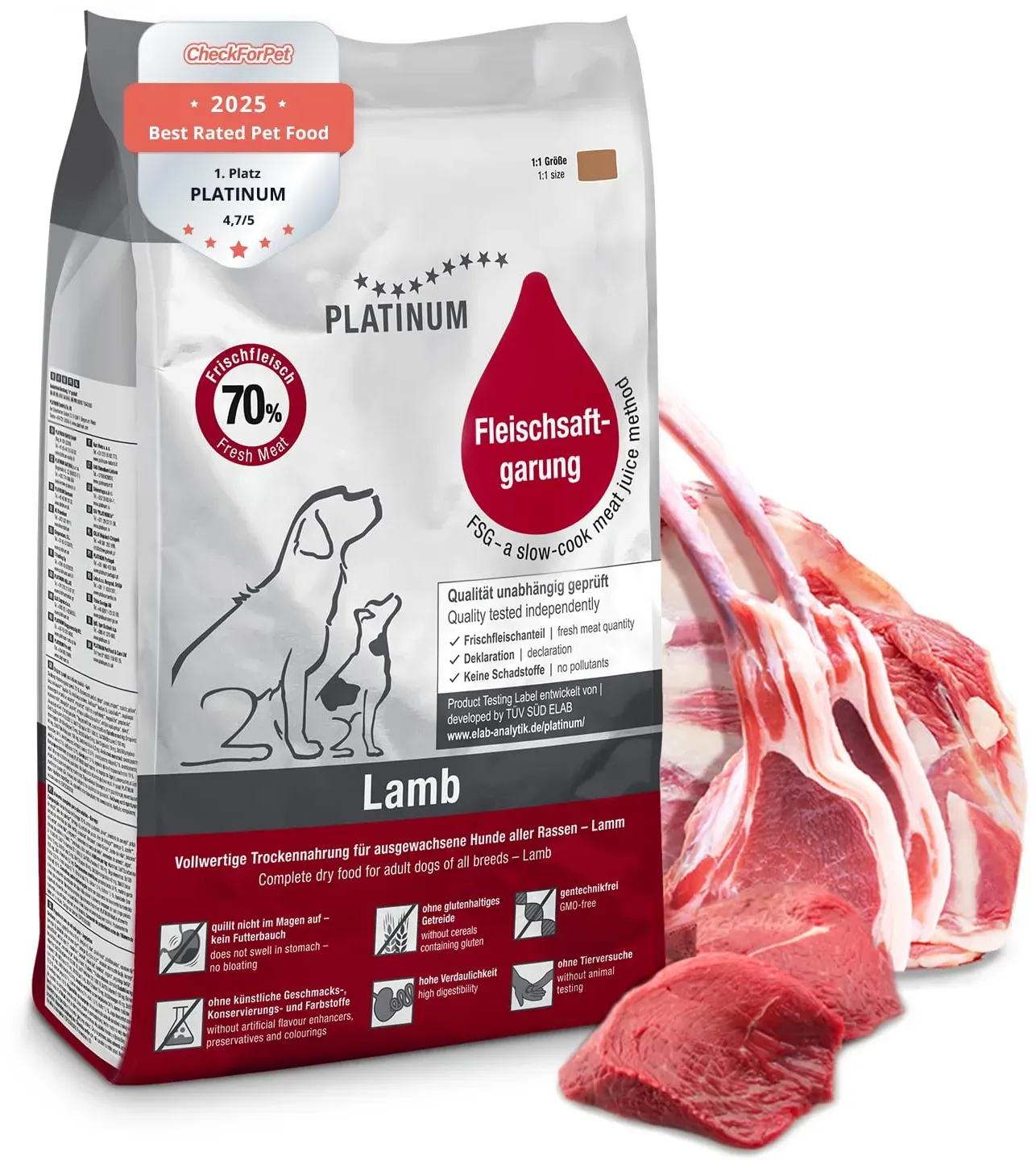 Auf Lager Versand durch AmazonPLATINUM - Hundenahrung Adult Lamb aus Fleischsaftgarung - 5kg Hundefutter trocken nährstoffreich wie BARF - besonders schmackhaftes Hundetrockenfutter für kleine und große Hunde - in DE geprüft