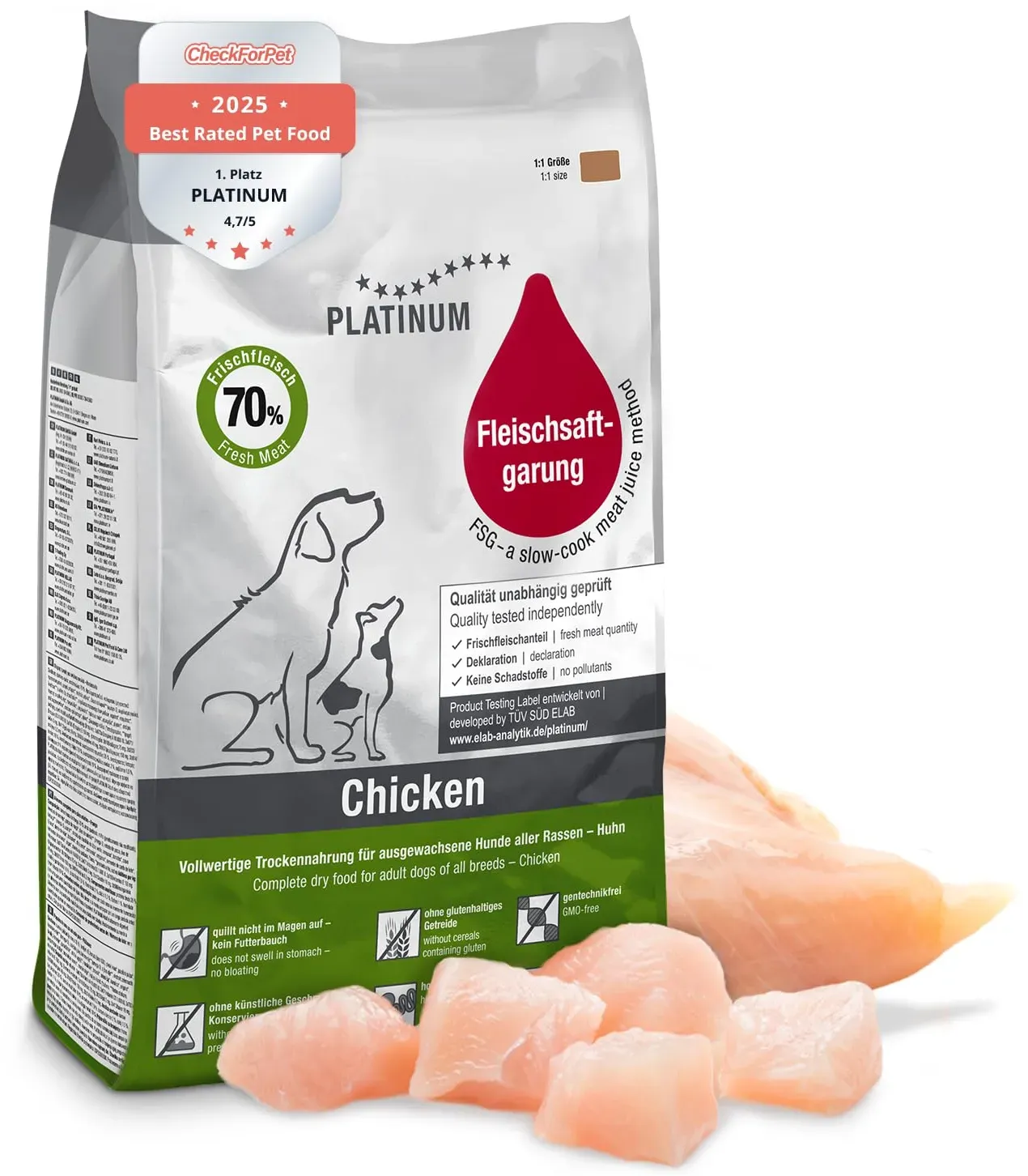 Auf Lager Versand durch AmazonPLATINUM - Hundenahrung Adult Chicken aus Fleischsaftgarung - 5kg Hundefutter trocken nährstoffreich wie Barf - besonders schmackhaftes Hundetrockenfutter für kleine und große Hunde - in DE geprüft