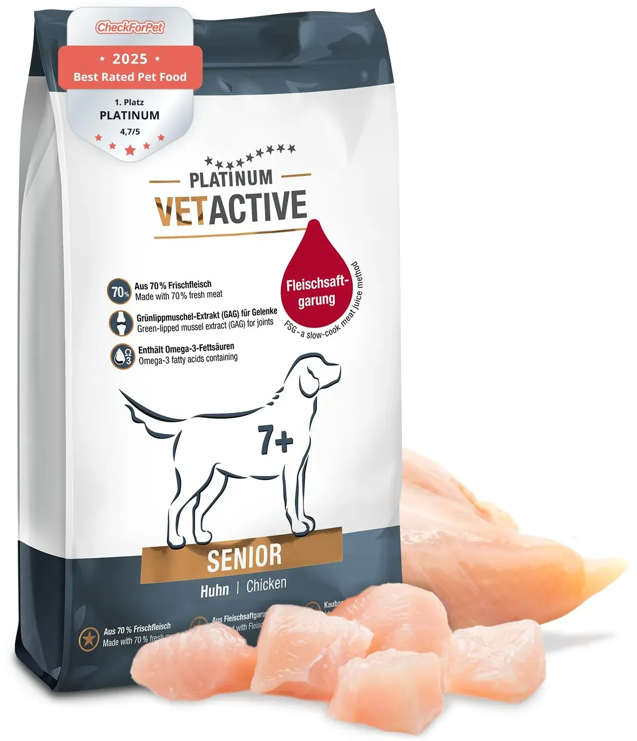 keine Angabe Gewöhnlich versandfertig in 3 bis 4 TagenPLATINUM - Hundenahrung VETACTIVE Senior aus Fleischsaftgarung - 5kg Hundefutter trocken nährstoffreich wie Barf - besonders schmackhaftes Hundetrockenfutter für Hunde - fett- und kalorienreduziert