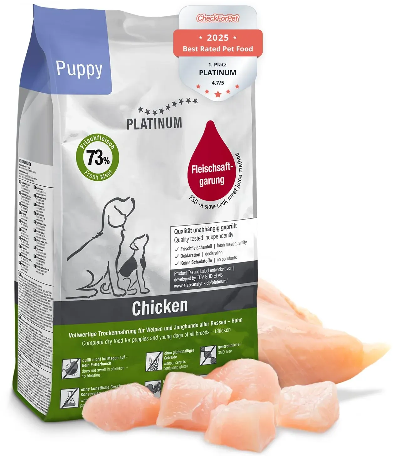 Auf Lager Versand durch AmazonPLATINUM - Hundenahrung Puppy Chicken aus Fleischsaftgarung - 5kg Hundefutter trocken nährstoffreich wie Barf - besonders schmackhaftes Hundetrockenfutter für Welpen und Junghunde - in DE geprüft